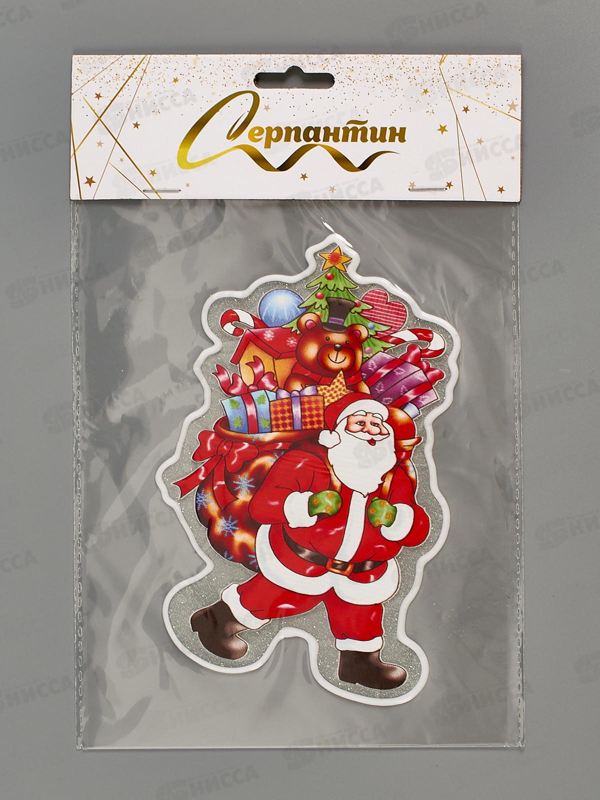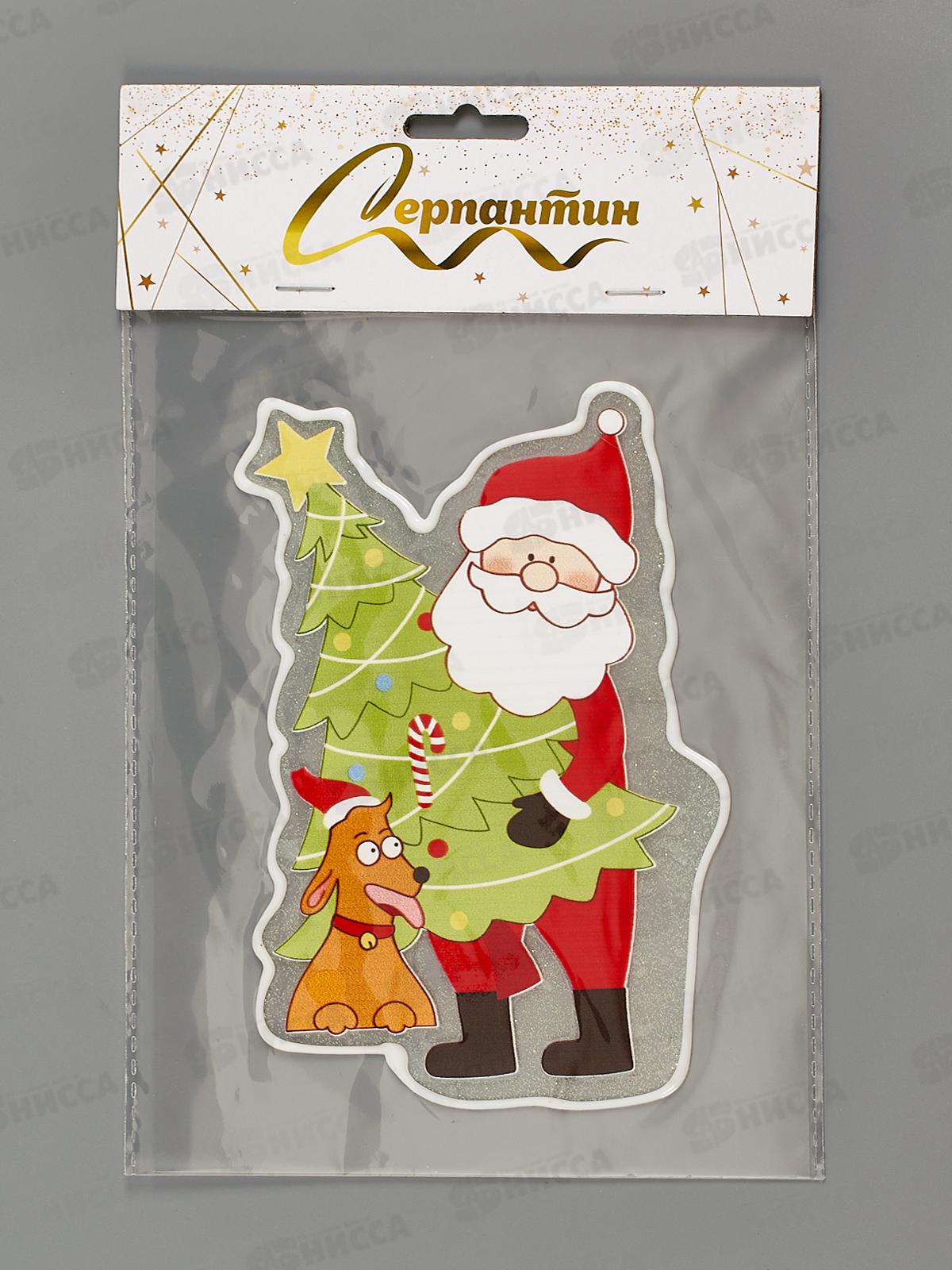 Код:542217; Наклейка на стекло "Дед Мороз с собачкой" 15*20см 185-0813