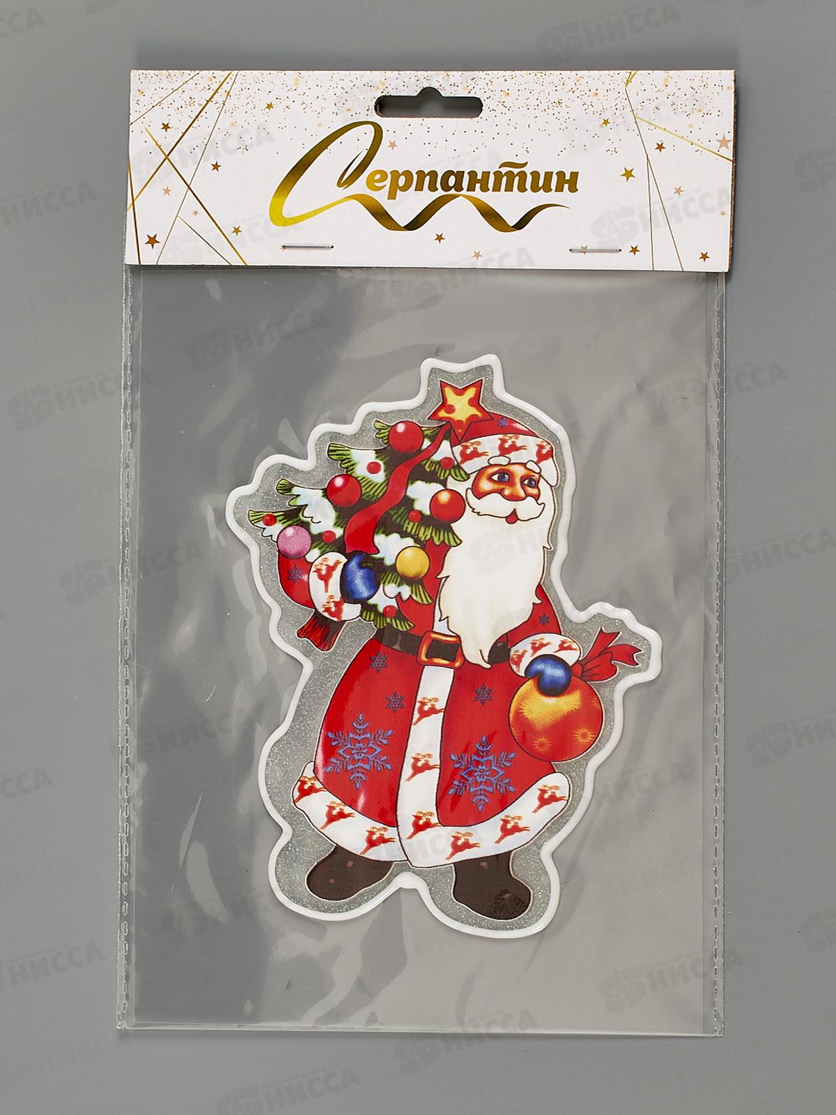 Код:542221; Наклейка на стекло "Дедушка с елкой" 15*20см 185-0789