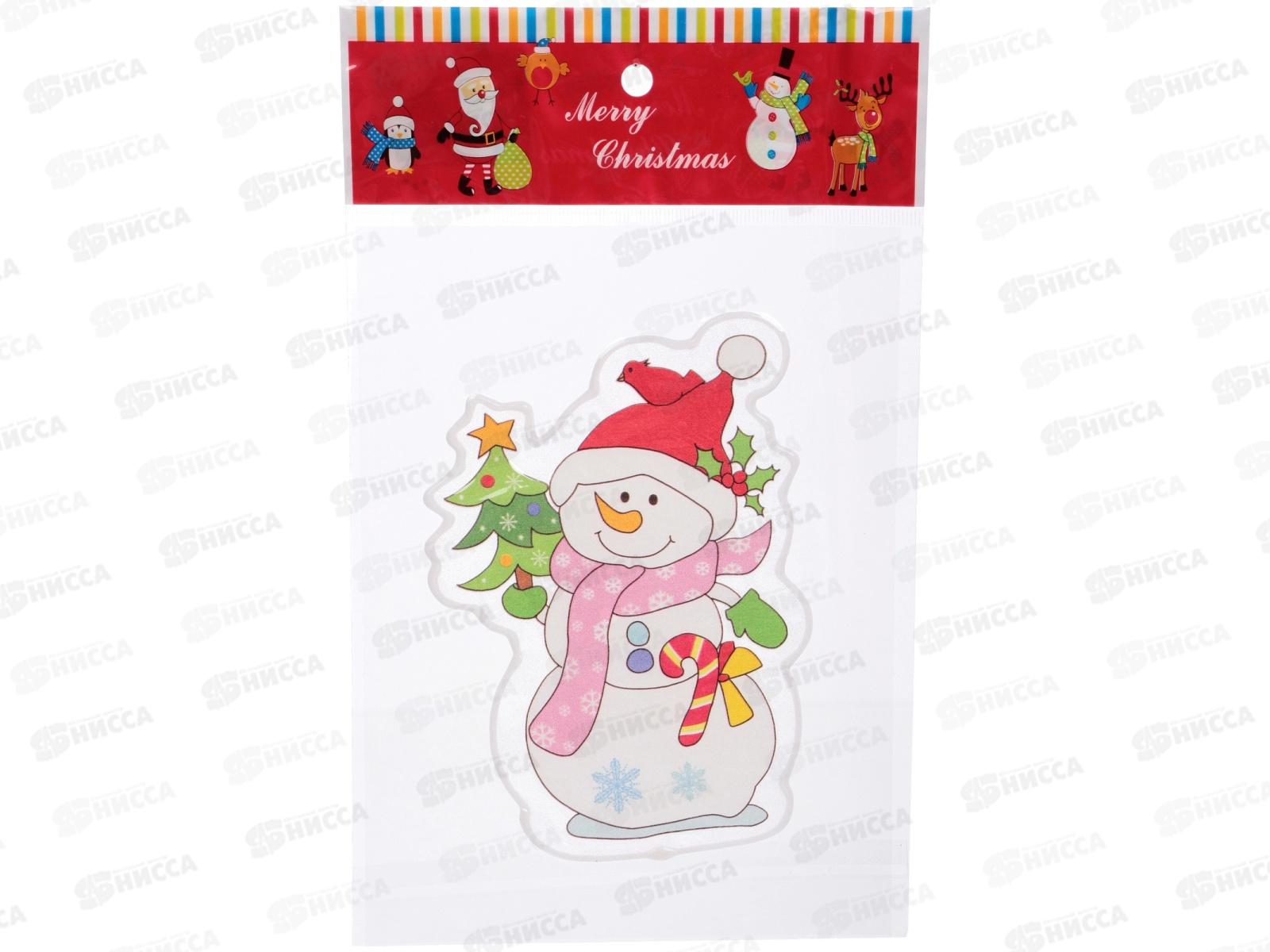 Код:586378; Наклейка на стекло "Снеговичок с елочкой" 15*20см 185-0815