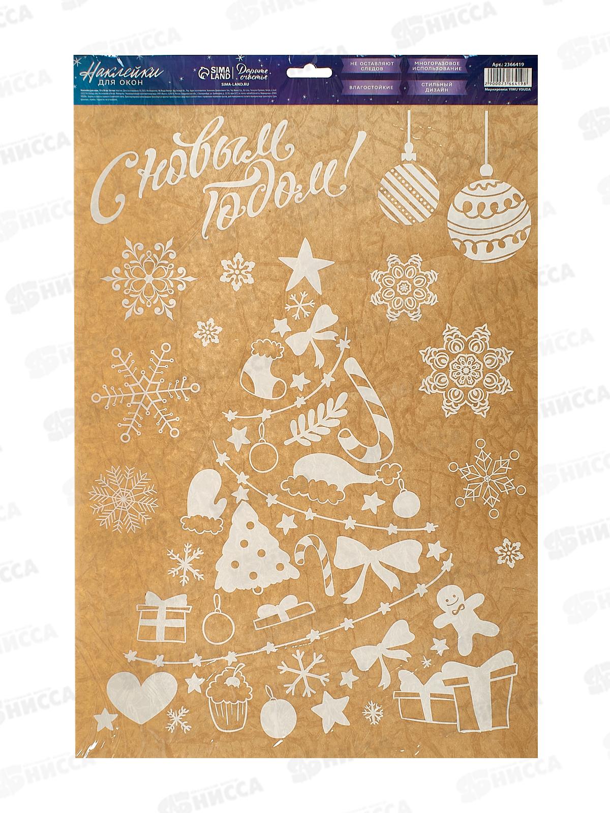 Код:588235; Наклейка на стекло "Праздник у ёлки" многораз. 33*50см 2366419
