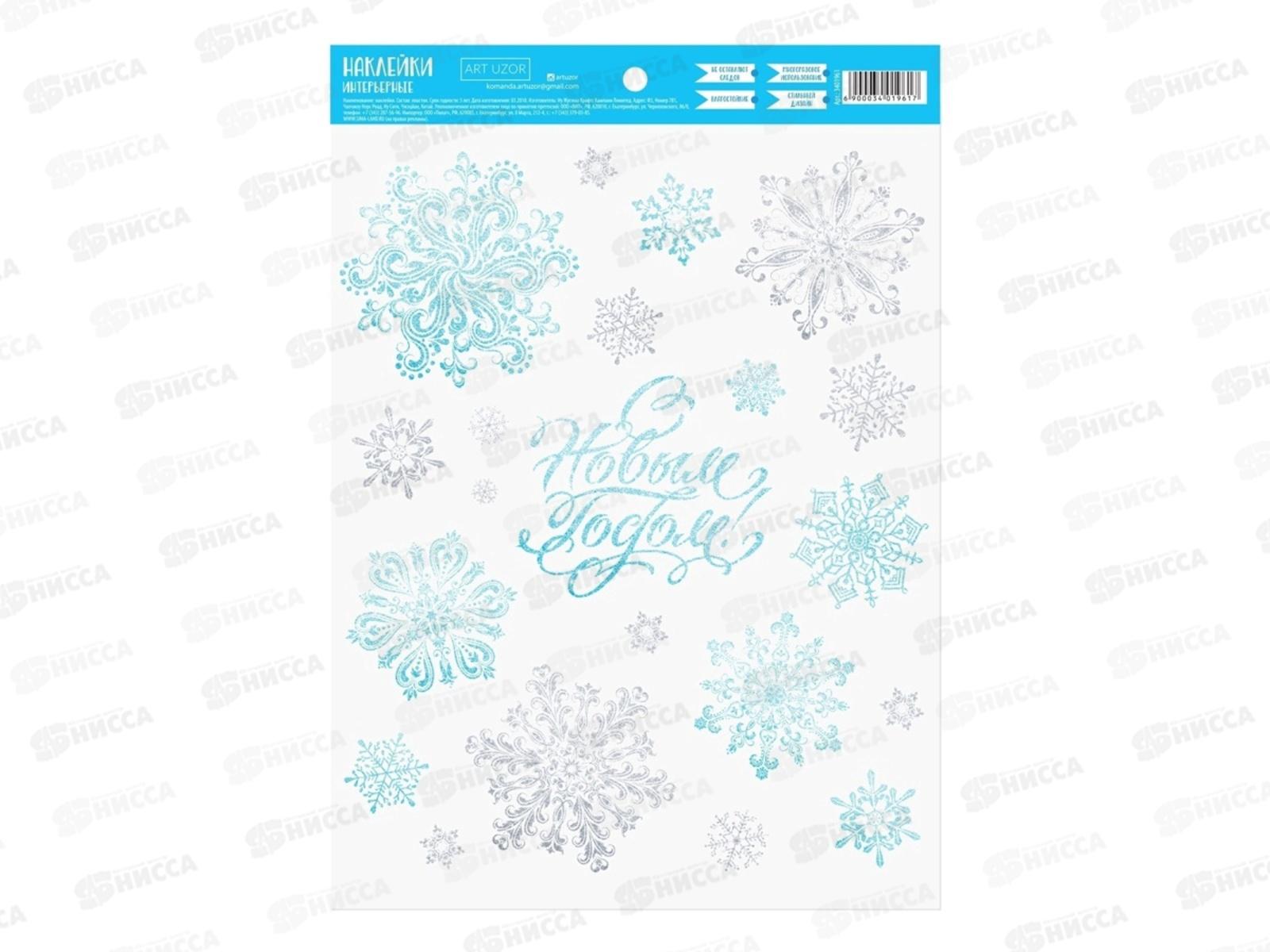 Код:588325; Наклейка интерьерная "Сверкающие снежинки" 21*29,7 см 3401961