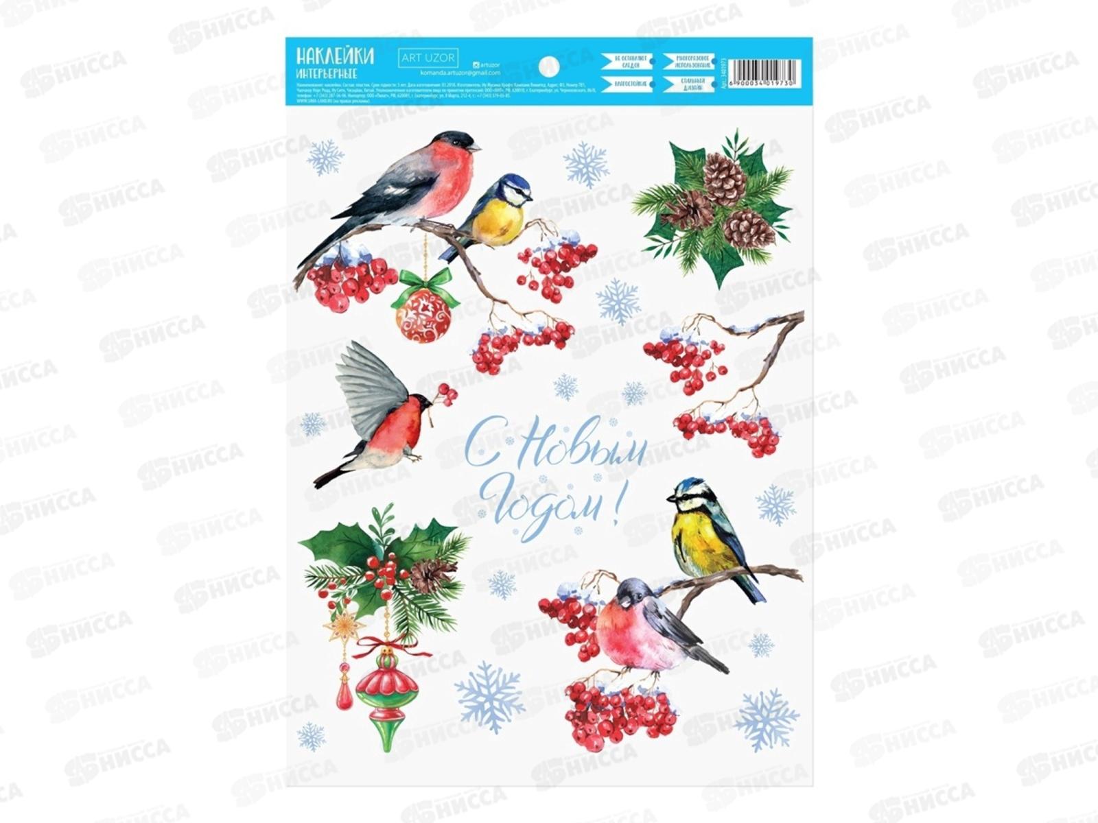 Код:588326; Наклейка интерьерная "Зимние птички" 21*29,7 см 3401973