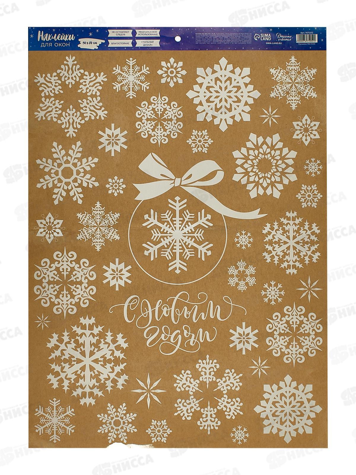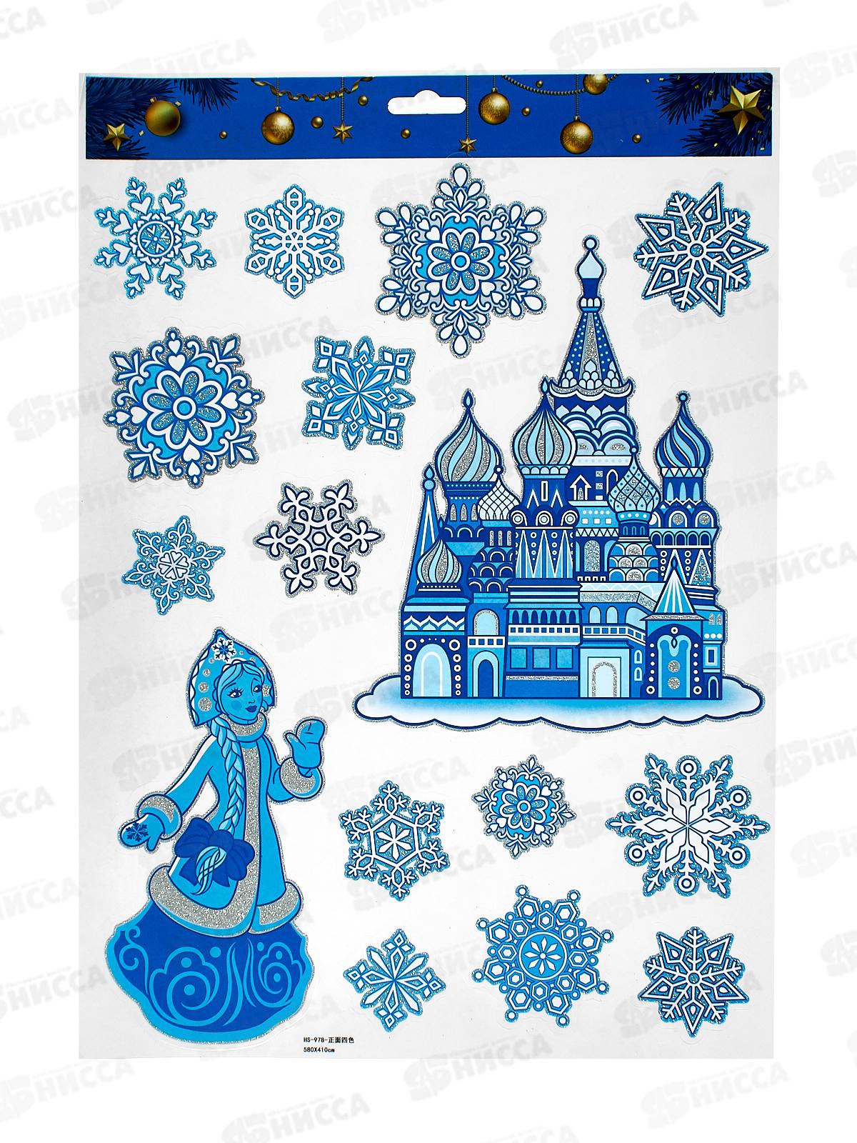 Код:588498; Наклейка для окон "Снежинки",многораз.,50*70см 7675252