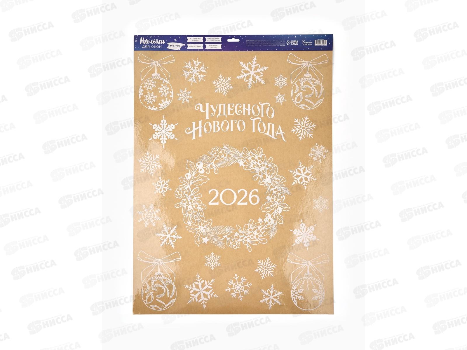 Код:588789; Наклейка для окон "Чудесного нового Года" 2026 50*70см 10864223
