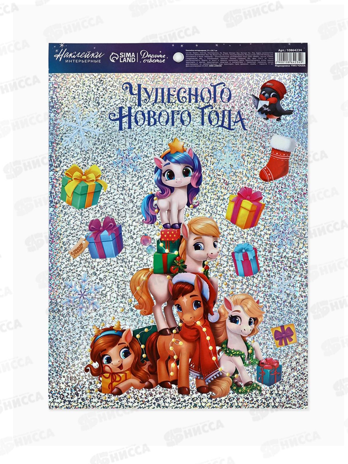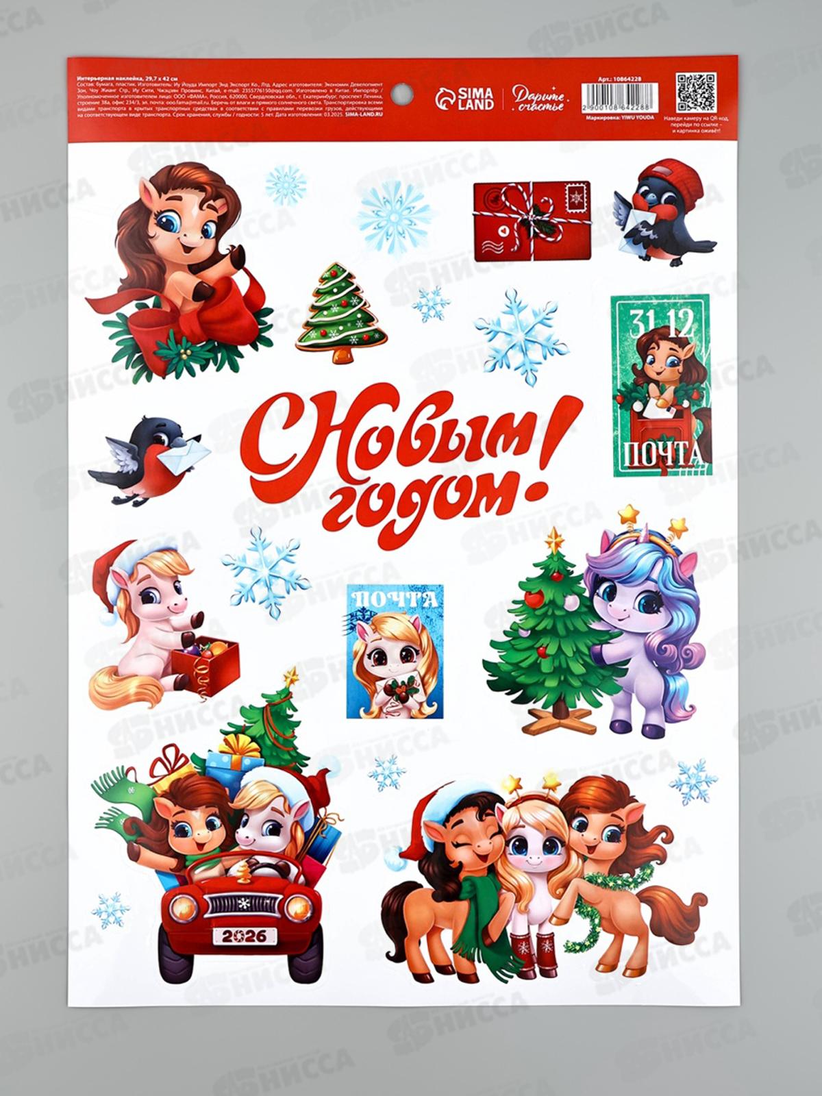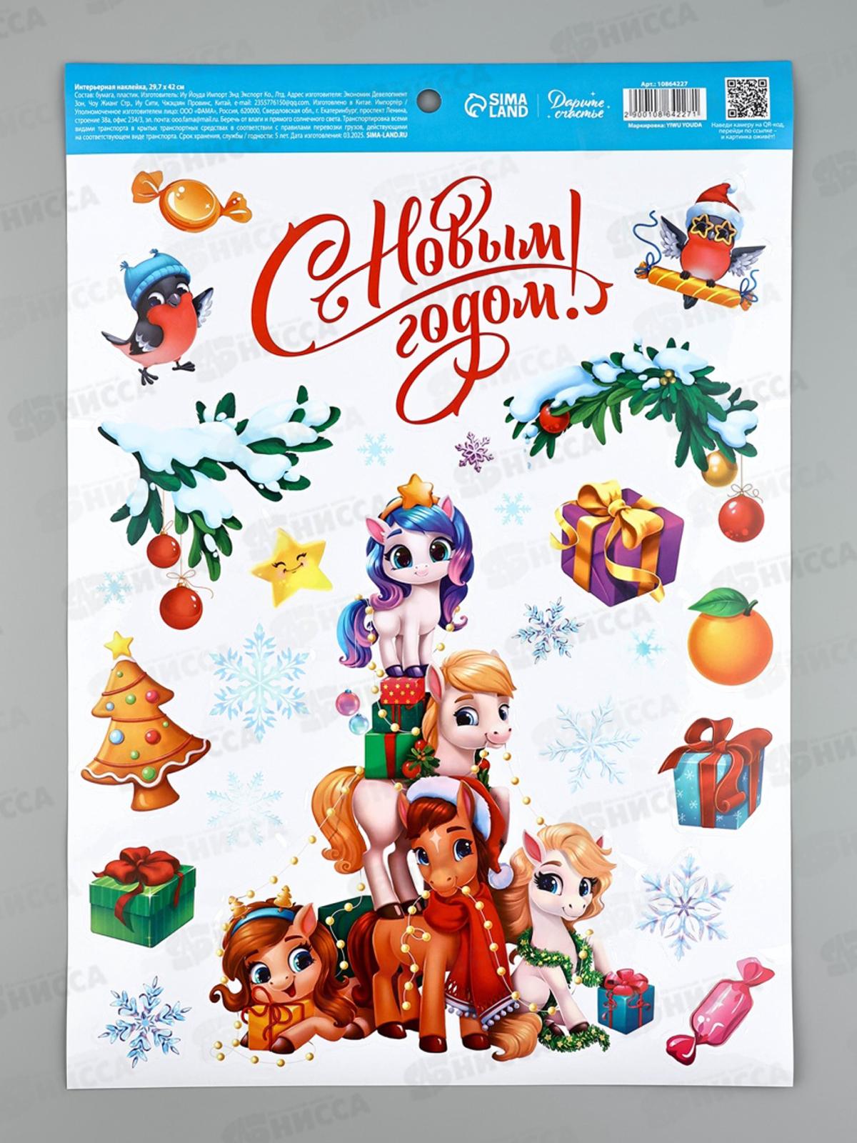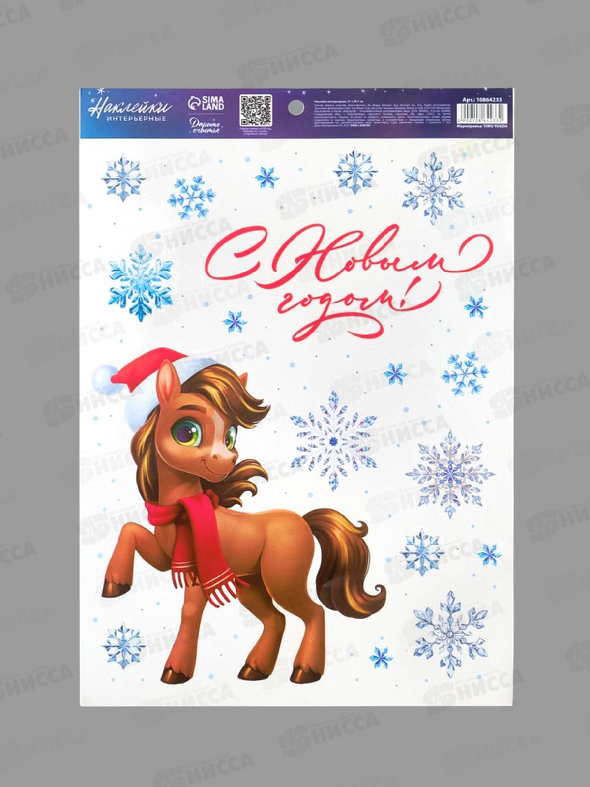 Код:588793; Наклейка интерьерная "С Новым годом!" конь, 21*29,7см 10864233