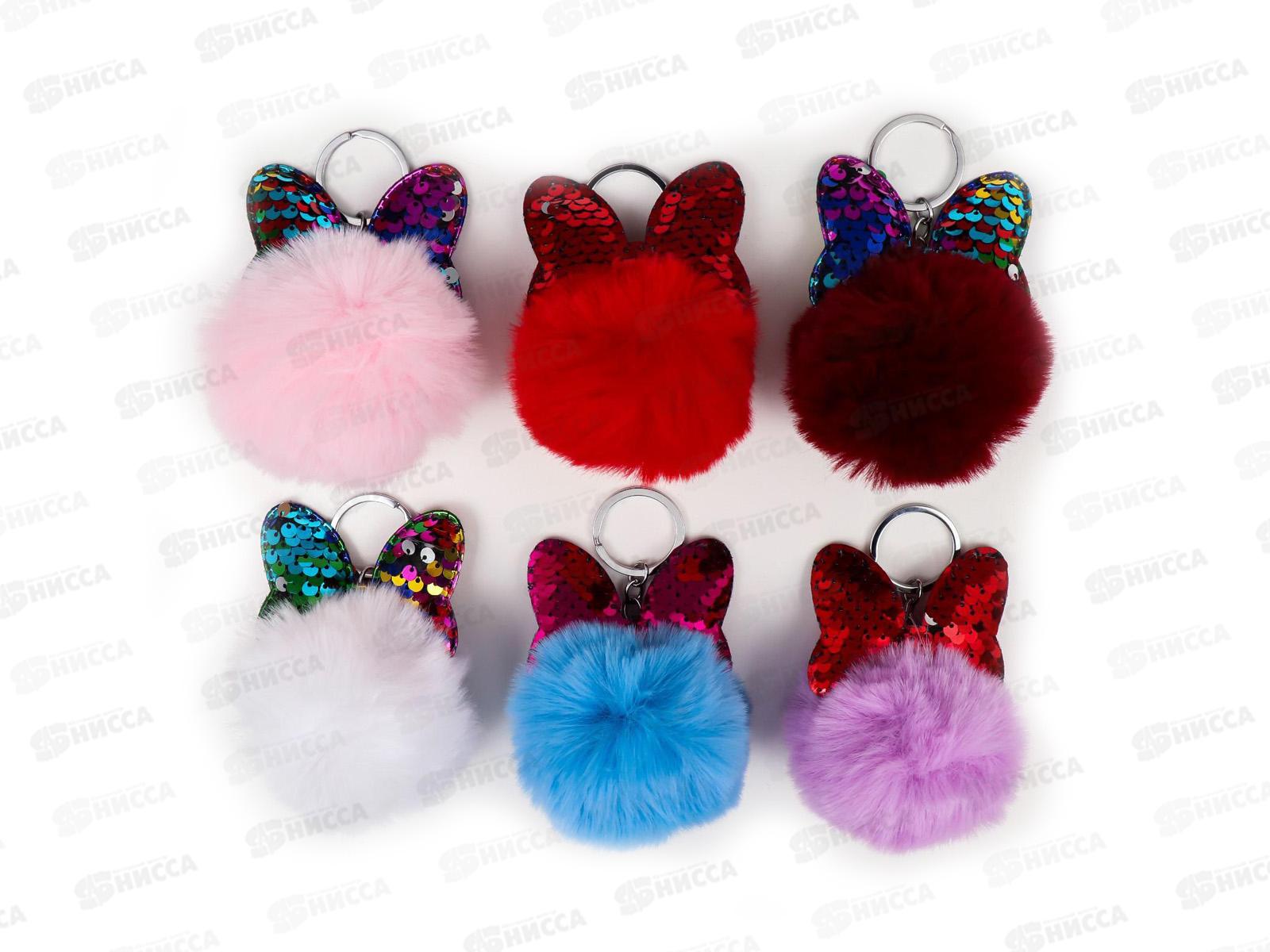Код:599843; Пушистик на кольце Шарик с бантиком, пайетки микс 10*7*7ми 4072289