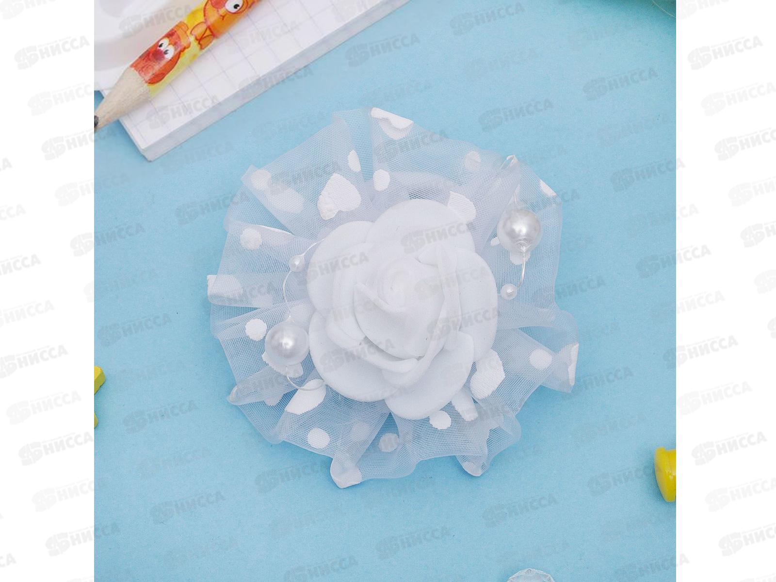 Код:244391; Резинка для волос "Школьница" бант 8,5см снежный жемч цветок 2539464 *6