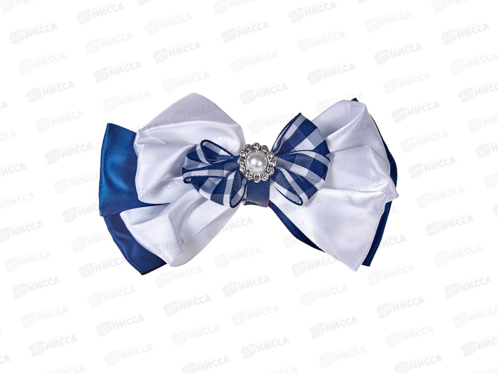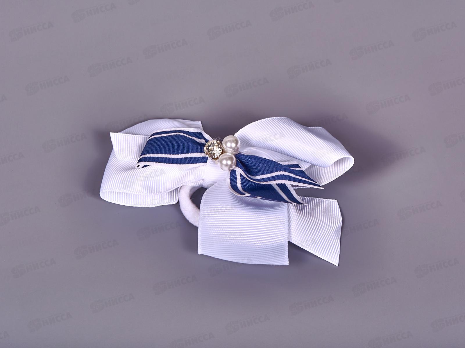 Код:242226; Резинка д/в "Школьница" бант 8см синяя с белым бантом 2800030
