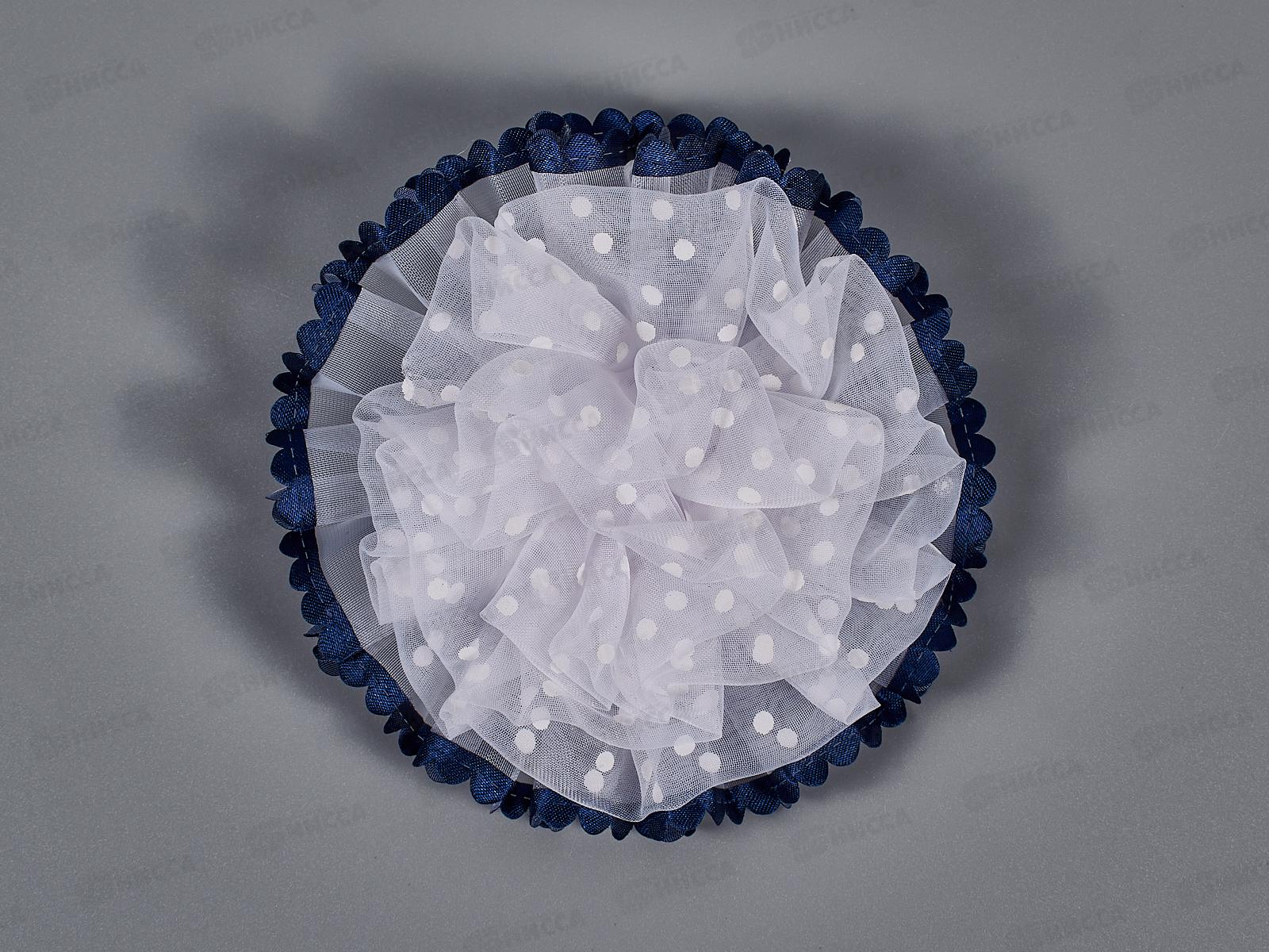 Код:580012; Резинка д/в "Школьница" бант горох 8см бело-синий 4098510