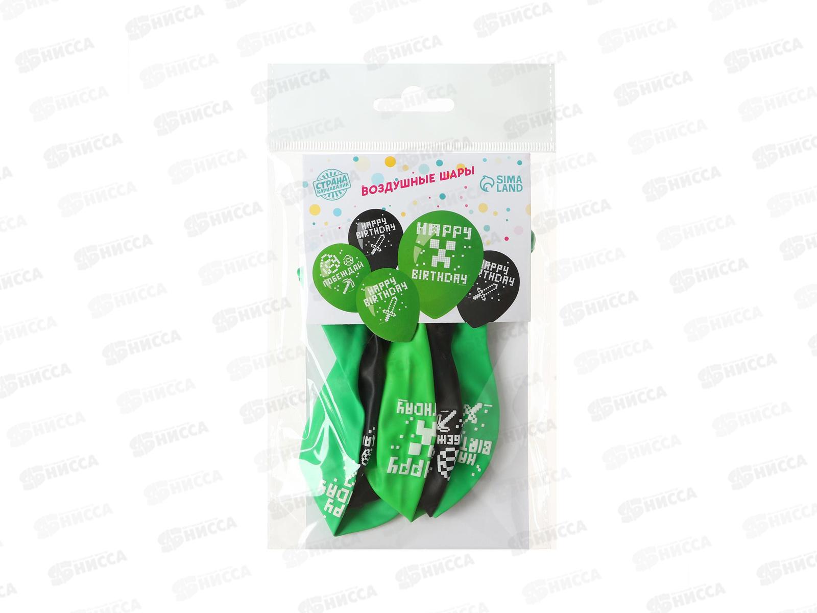 Код:587752; Шары 12" "С Днем рождения Геймеру" 5шт, черный, 7724579