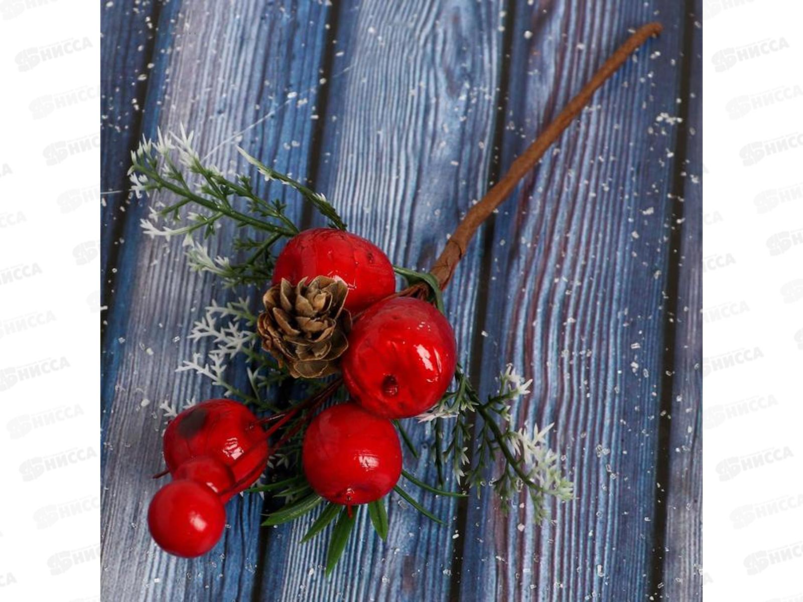 Код:588885; Декор "Зимнее очарование" шишка с ягодами на ветке 16см 4306250