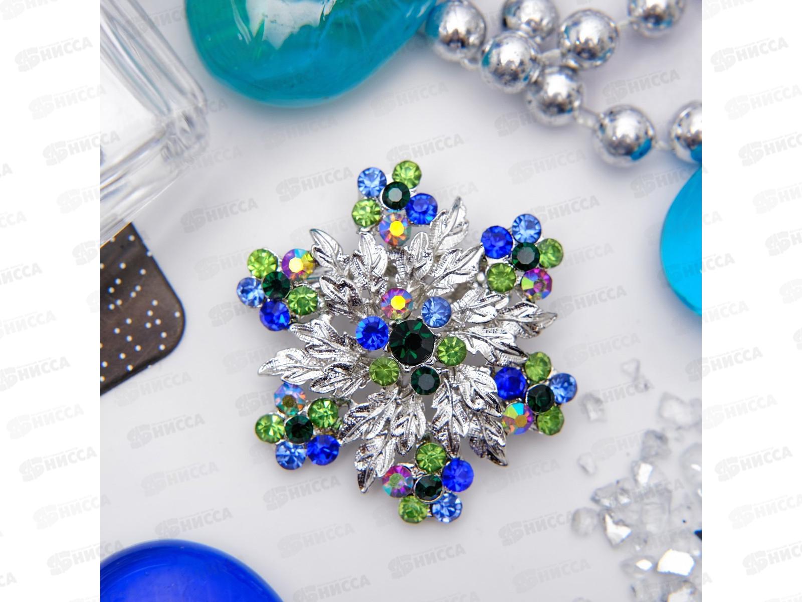 Код:437454; Брошь "Цветок" аралия сине-зеленый 3723736