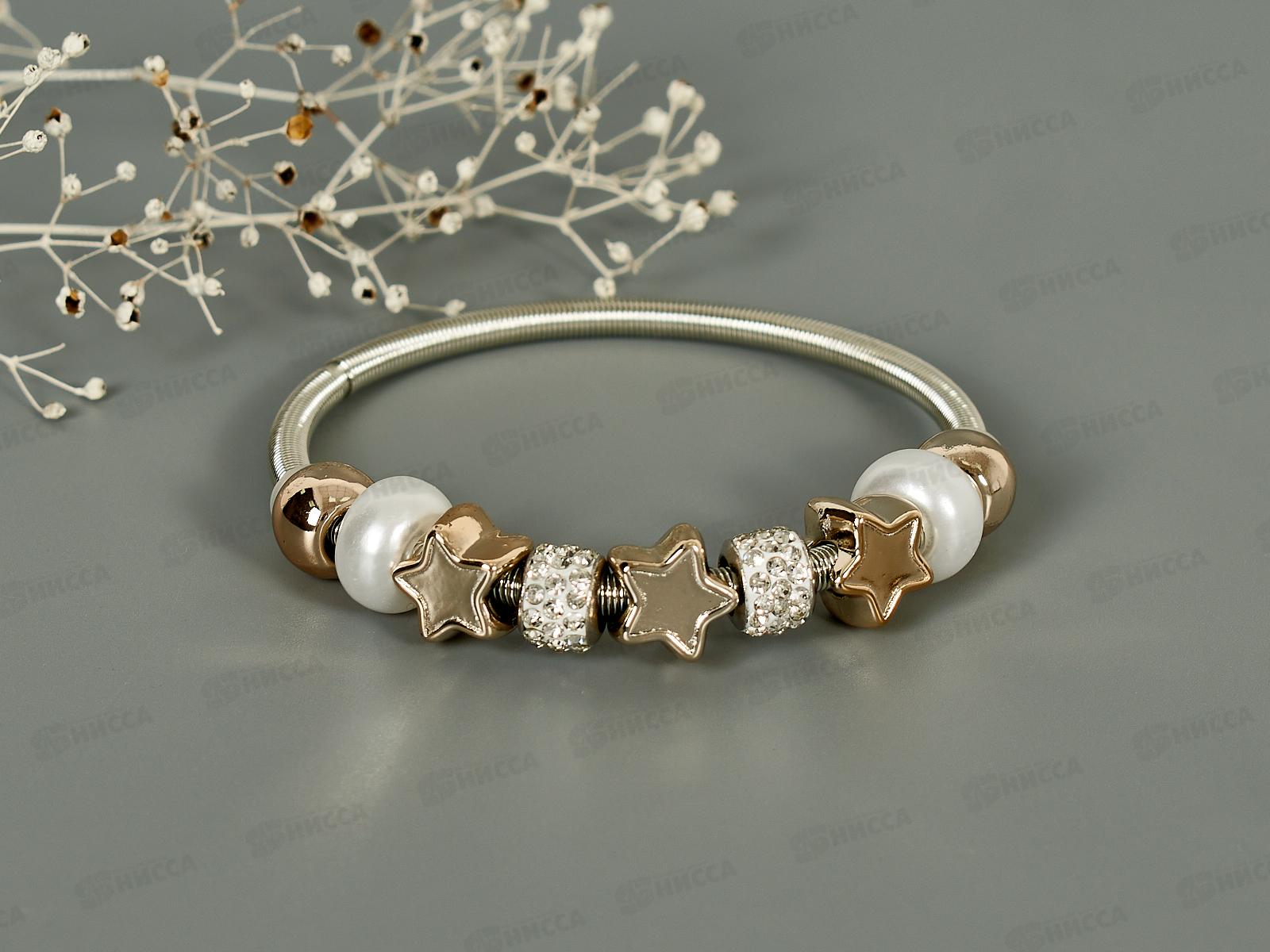 Код:293395; Браслет жемчуг "Марджери" звезды, белый в серебре 1886572