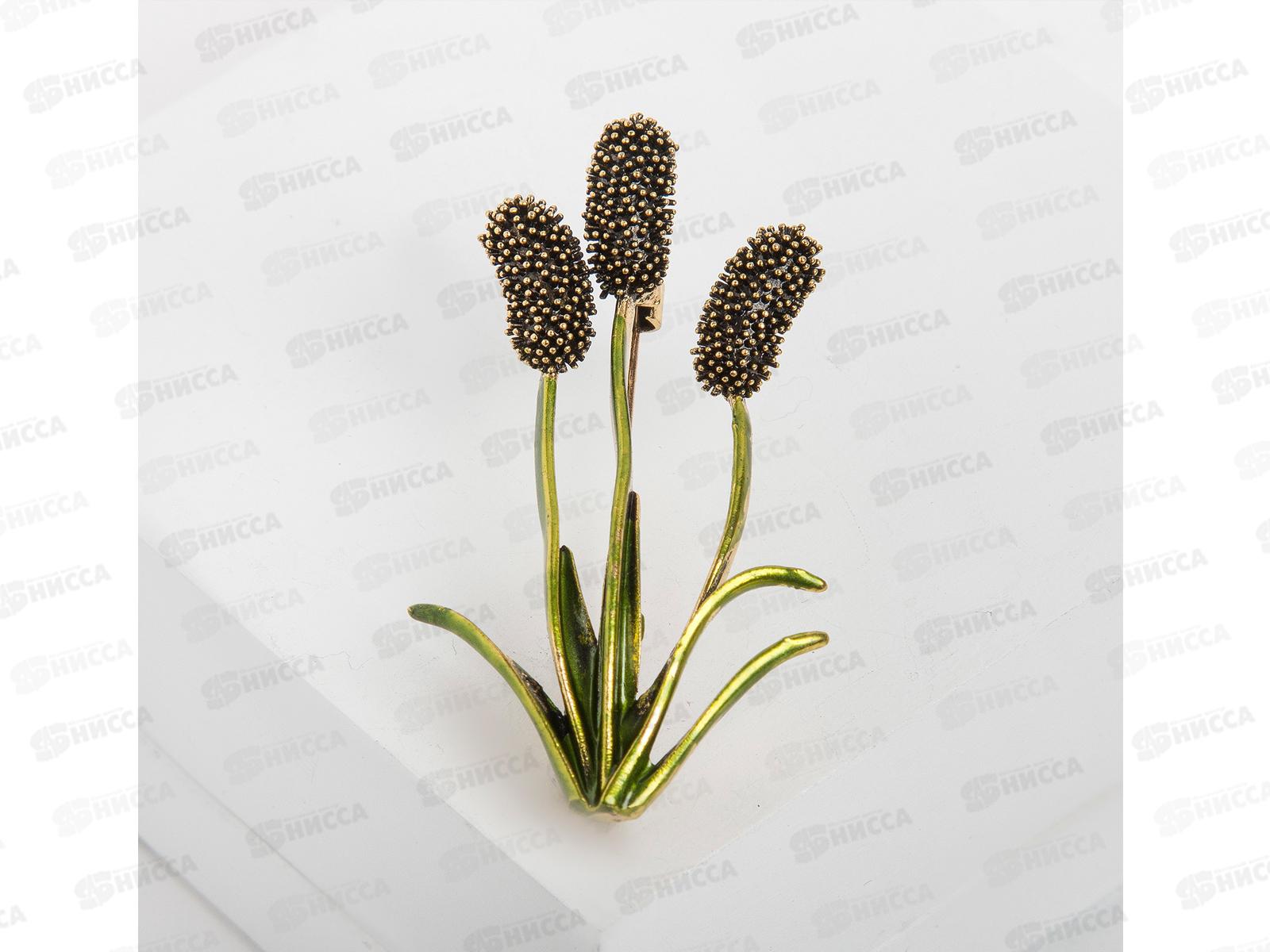 Код:404323; Брошь "Камыш" зеленый в золоте 4570943