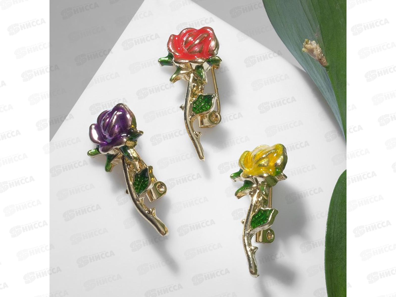 Код:475683; Брошь "Роза" с листьями микс 9088989 *12