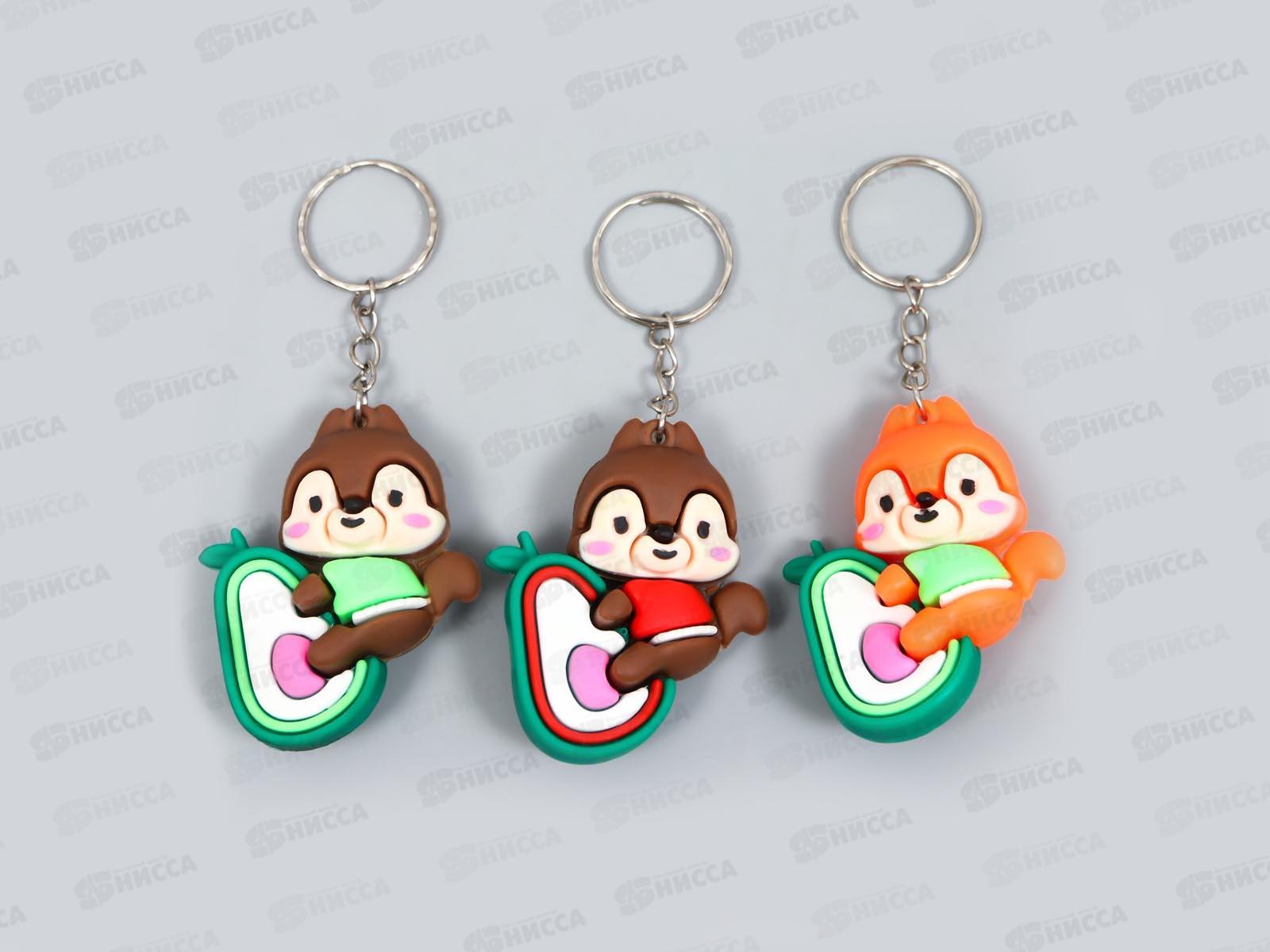 Код:599791; Брелок резина "Белочка на авокадо" микс 1,6*4,3*5,2см 7865476