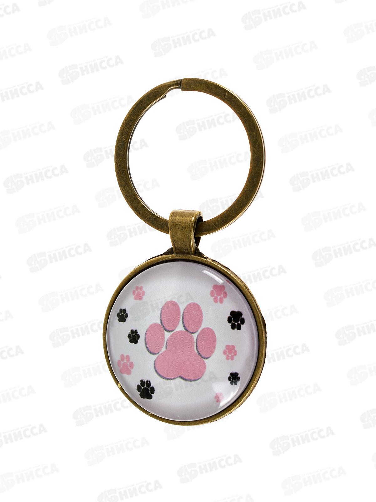 Код:599826; Брелок металл, стекло "Круг. Следы кошки" d=3см 10666579