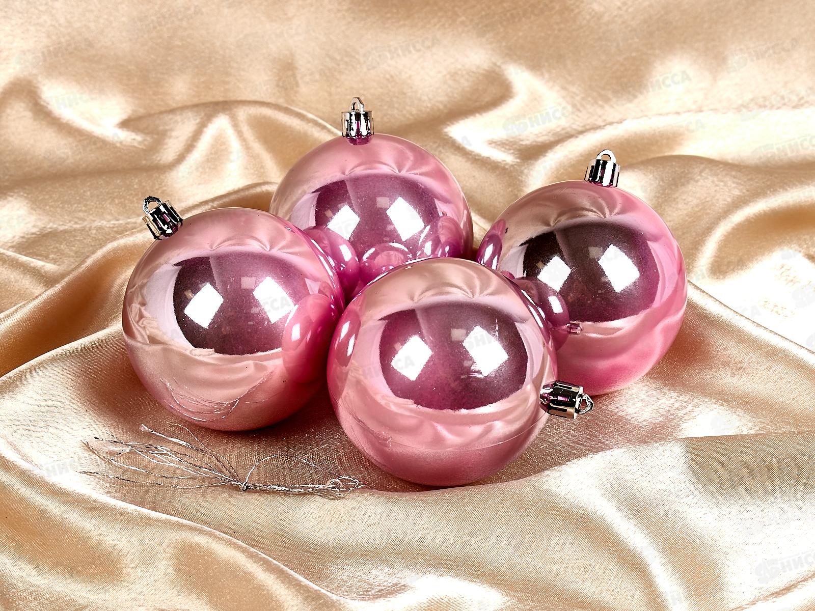 Код:457374; Набор елочных шаров 4шт, 8см "Глянец" розовый 1009336