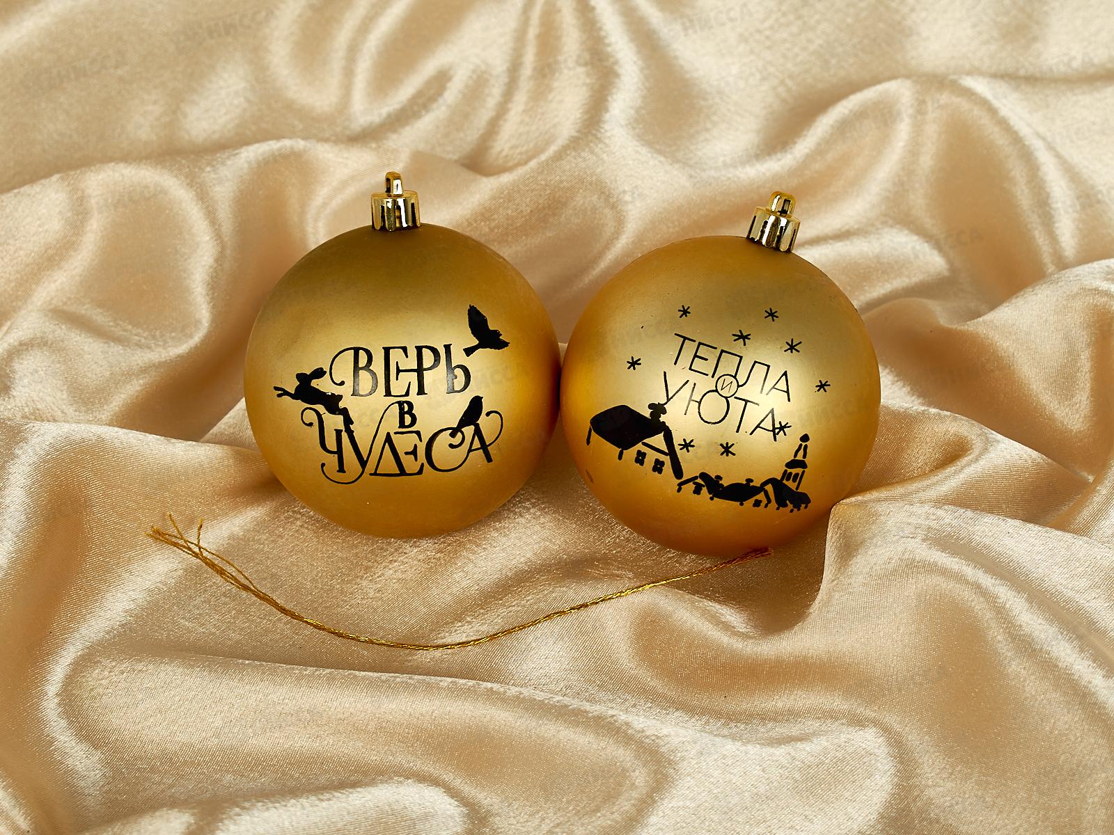 Код:588526; Набор елочных шаров 2шт "Тепла и уюта!" d-8, золото 9490040