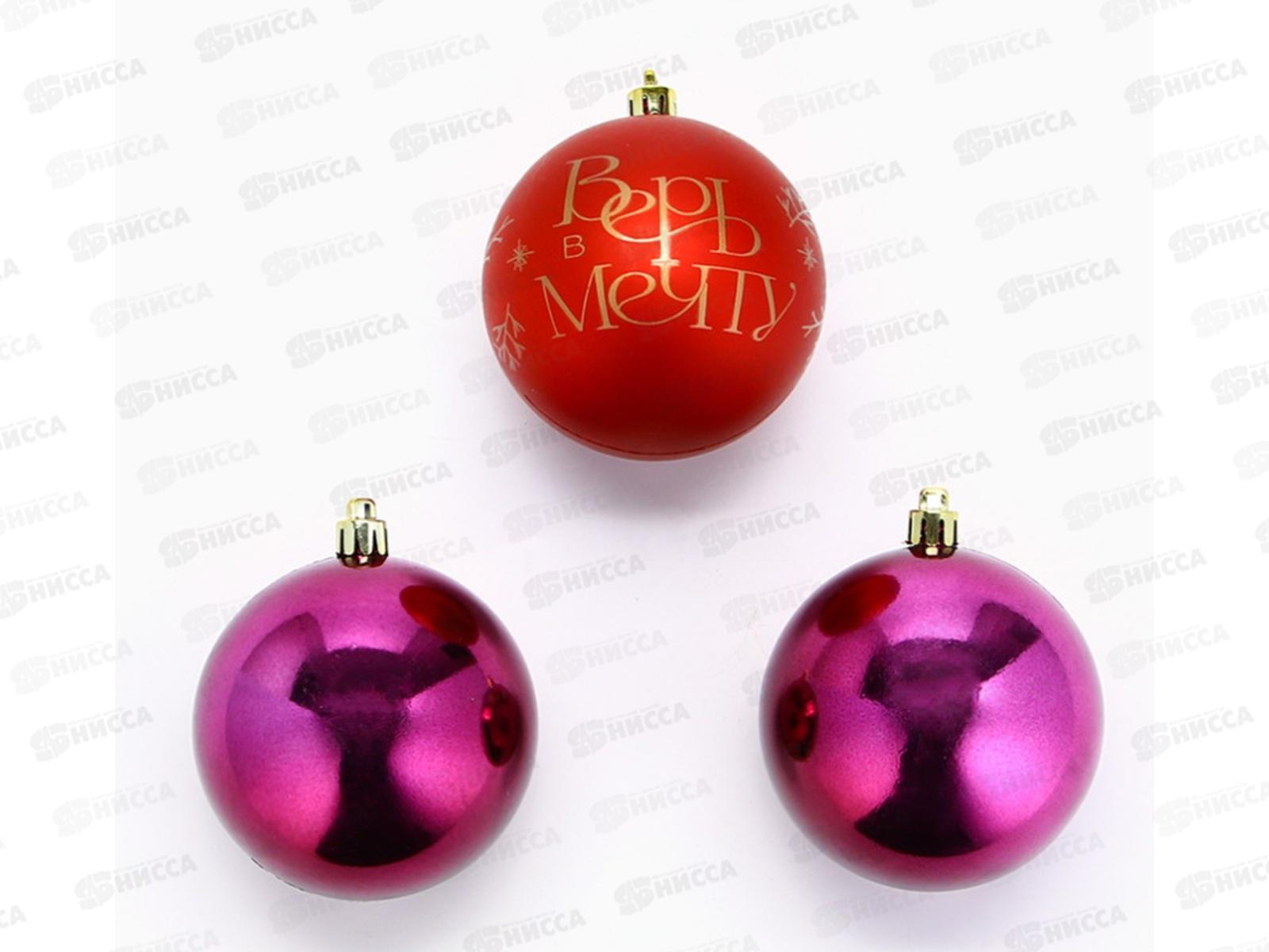 Код:588527; Набор елочных шаров 3шт "Верь в мечту!" d-8, красный с золотом 9490044