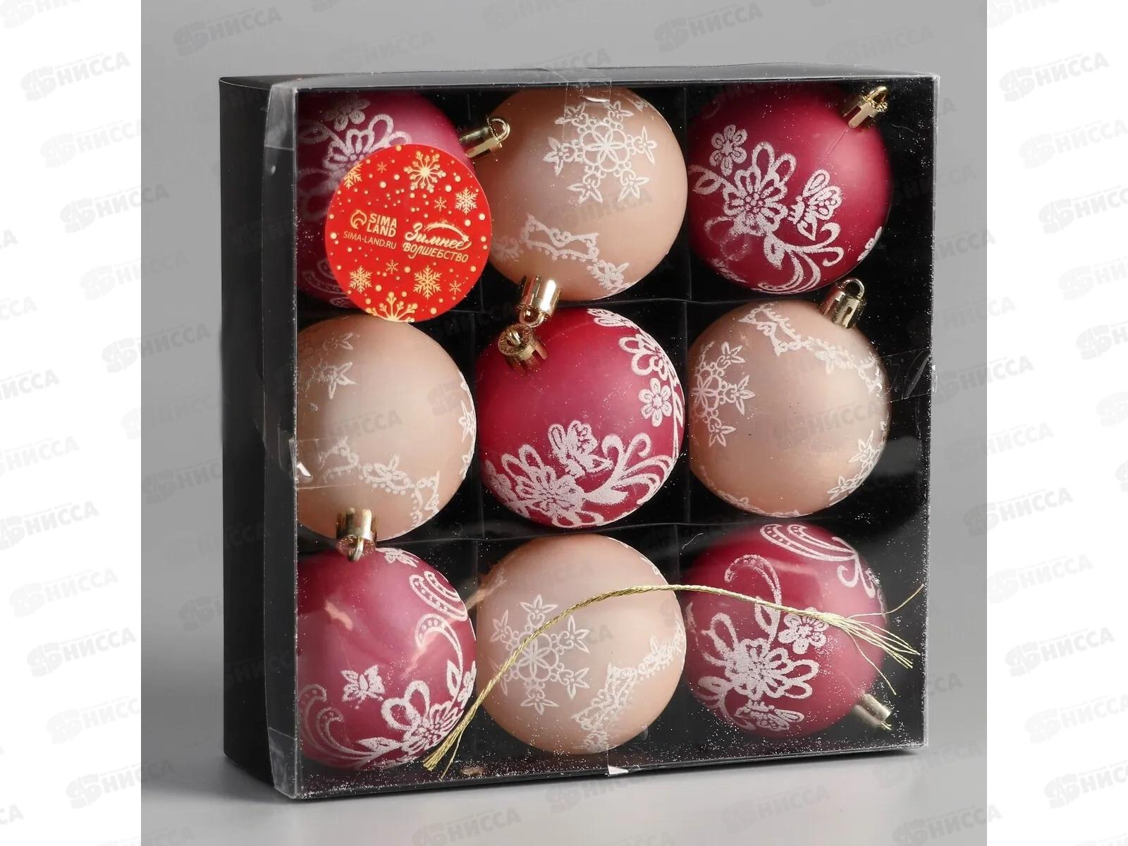 Код:588529; Набор елочных шаров 9шт, "Ажур" d-5,5см, красный бежевый 9510347