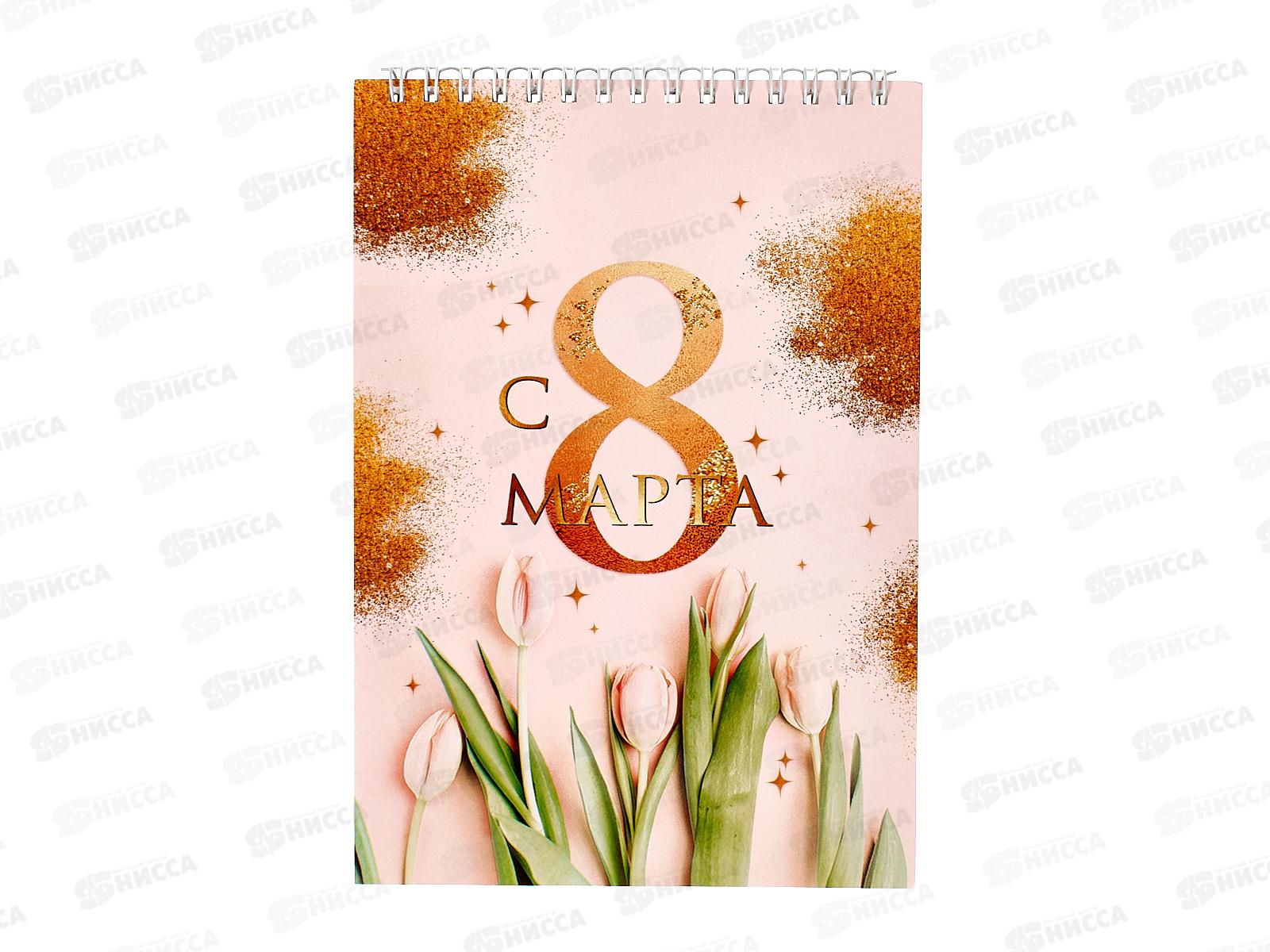 Блокнот 40л "С 8 марта золото тюльпаны" на греб., А5, 5277057