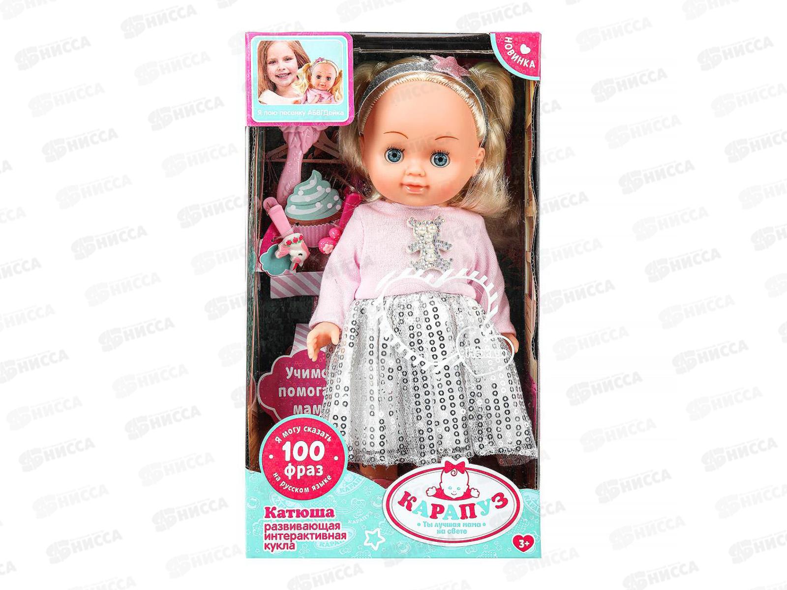 Развивающая интерактивная кукла «Катюша» ТМ «Карапуз» станет прекрасным подарком для вашей маленькой принцессы: поёт 2 песни: «АБВГДейка», «Волшебный ...