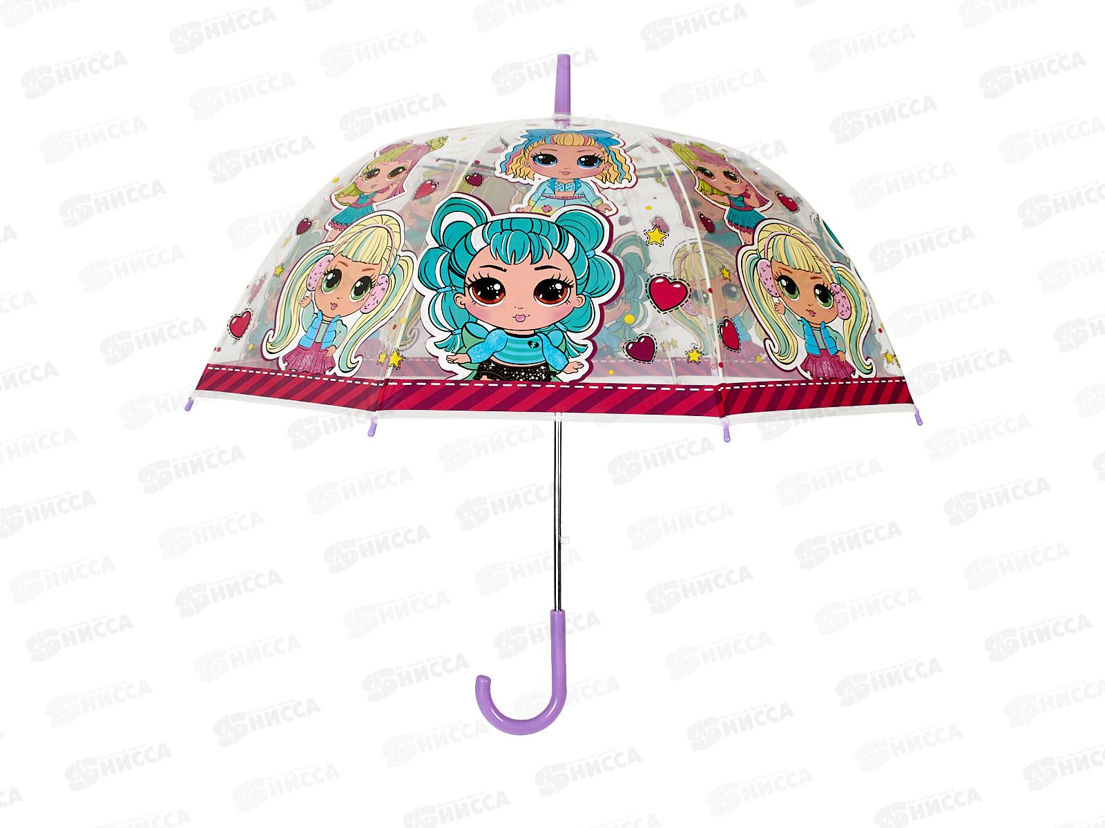 Код:574327; Зонт детский Куклы модницы, r-60см, прозрачный, полуавтомат UM60T-NLOL