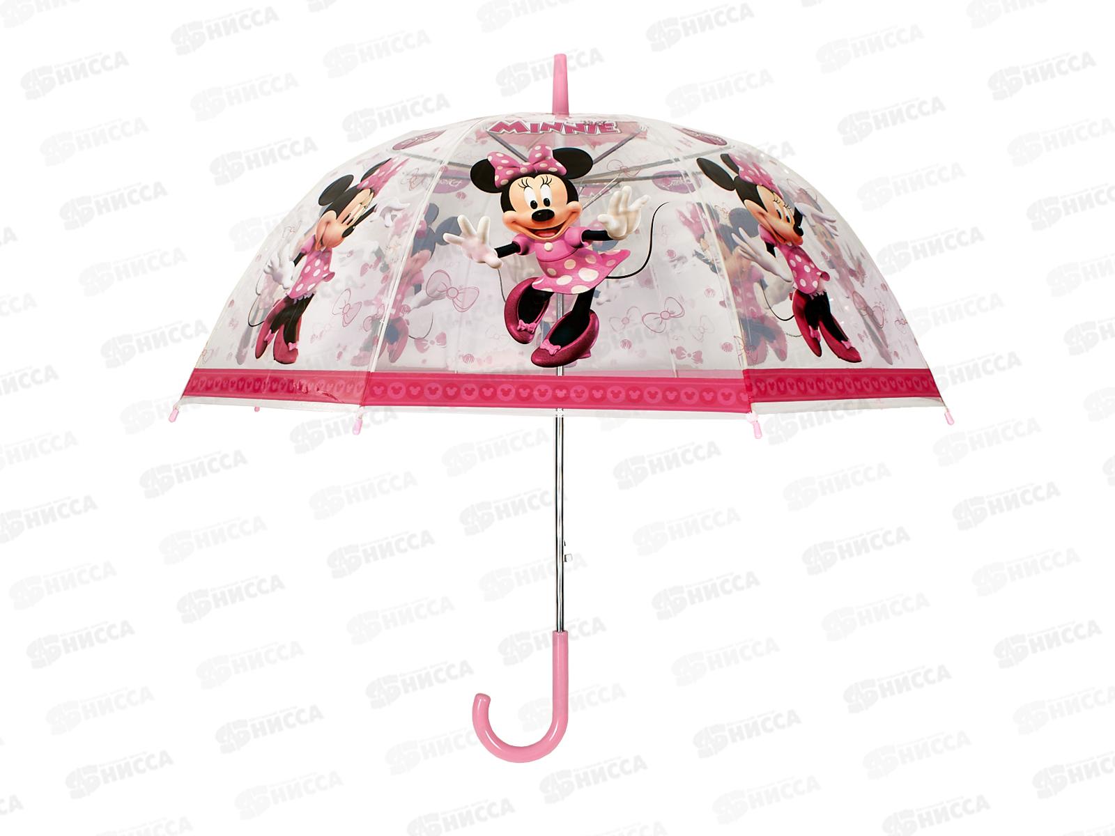 Код:574344; Зонт детский Минни Маус, r-60см, прозрачный, полуавтомат UM60T-NMOUSE