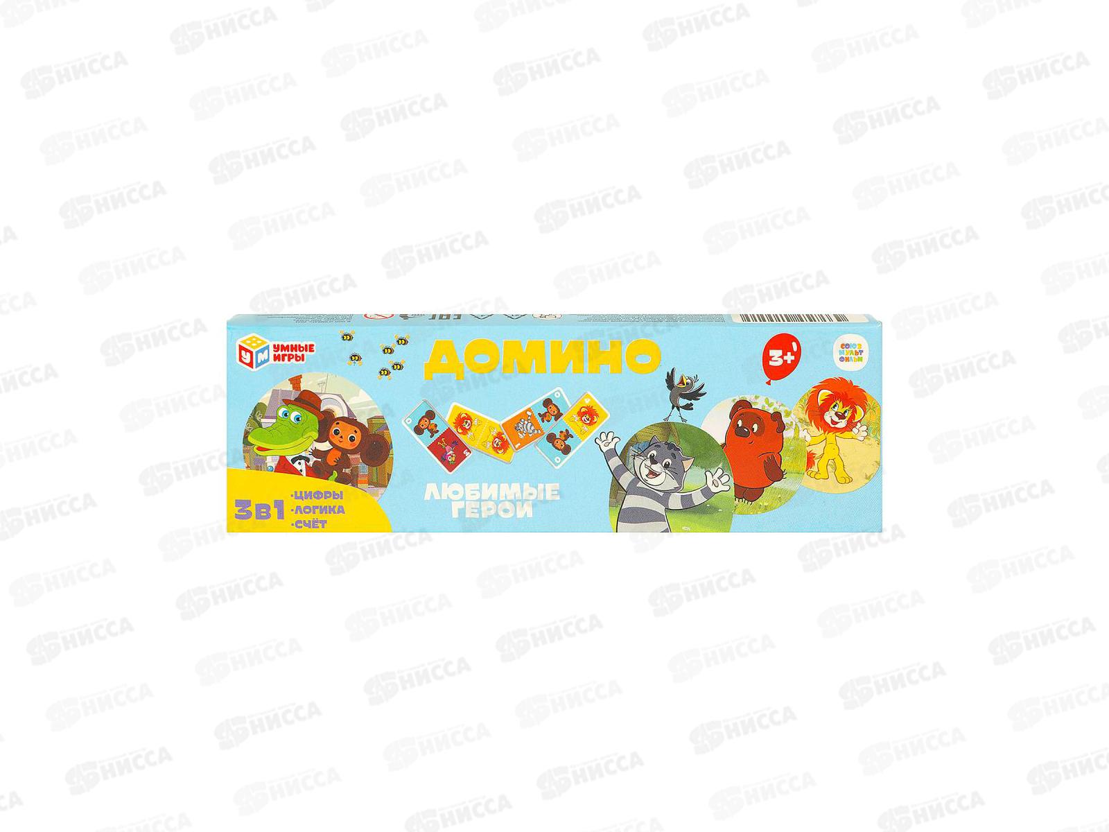 Пластиковое домино Союзмультфильм. Любимые герои ТМ Умные игры - интересная развивающая игра для детей: 3 в 1: цифры, логика, счёт, 28 фишек с изображ...