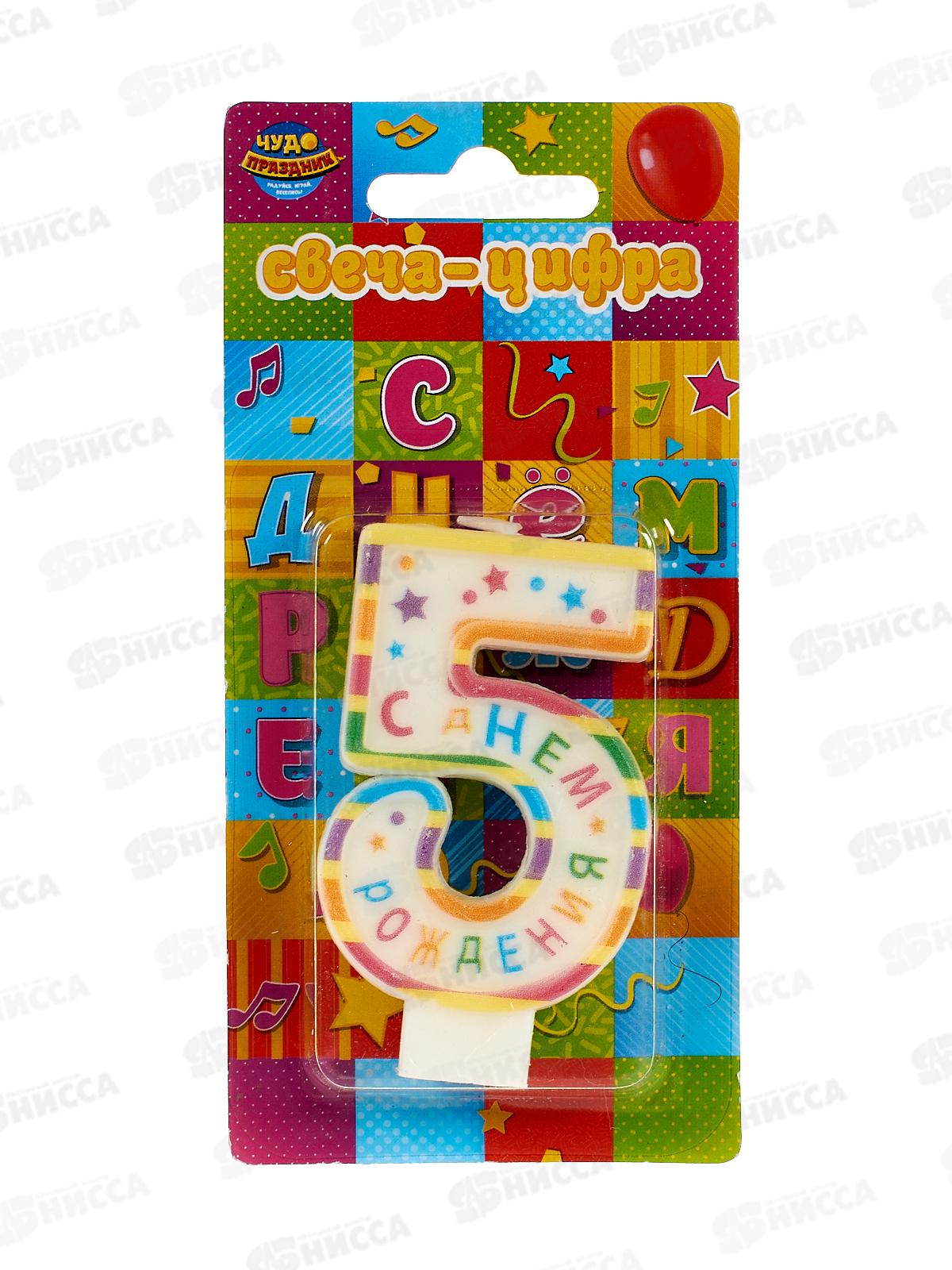 Код:572426; Свеча для торта цифра "5" День рождения СС-110193-НВ4 Чудо праздник