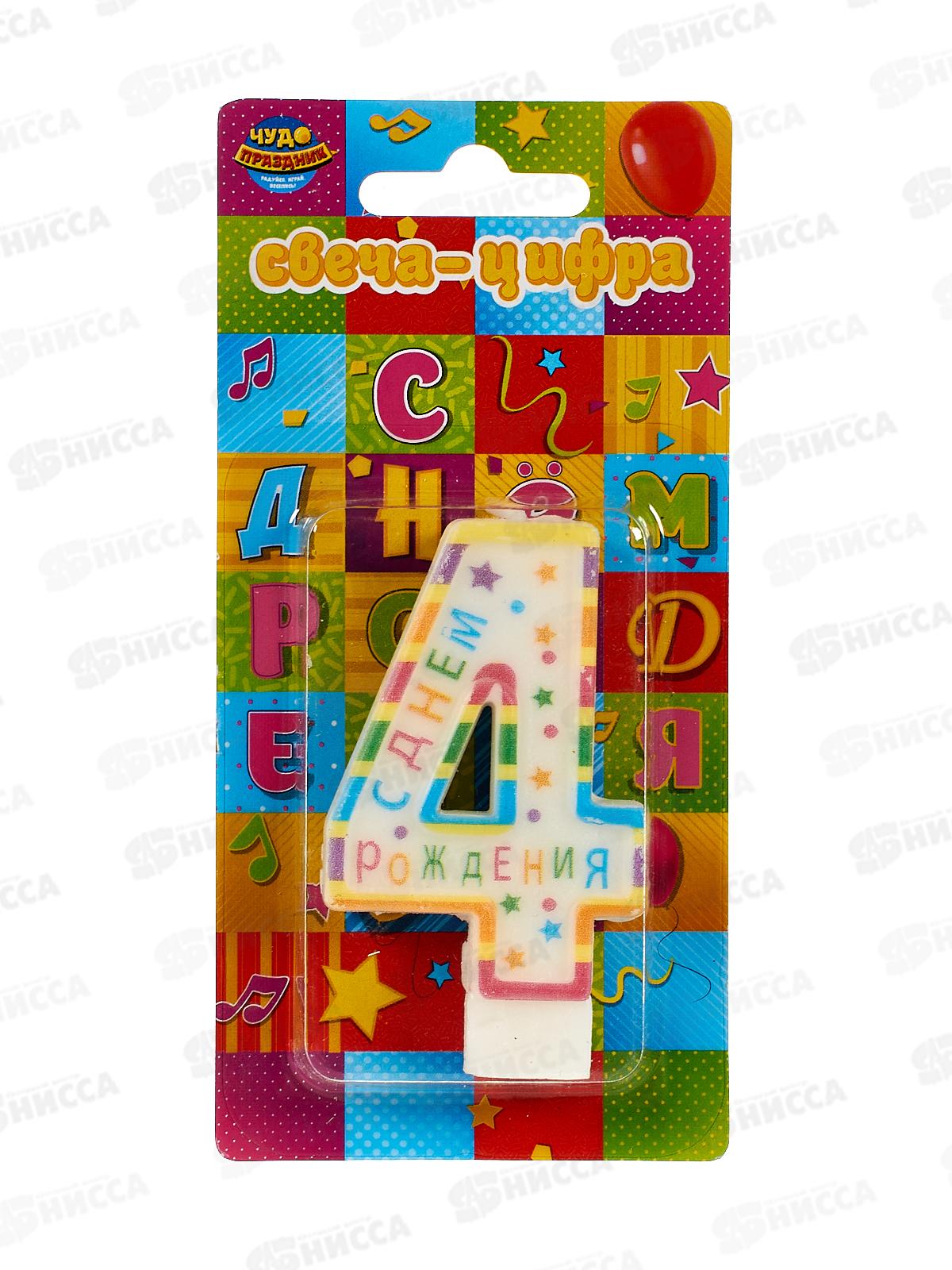 Код:572428; Свеча для торта цифра "4" День рождения СС-110192-НВ4 Чудо праздник*12