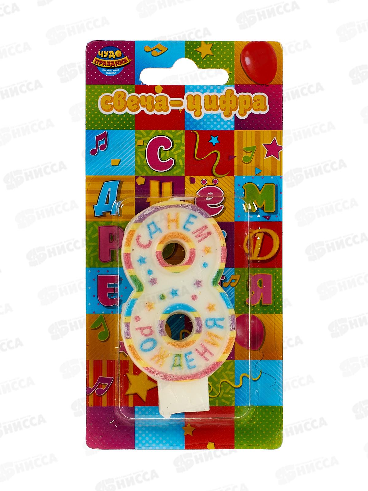 Код:572430; Свеча для торта цифра "8" День рождения СС-110196-НВ4 Чудо праздник*12