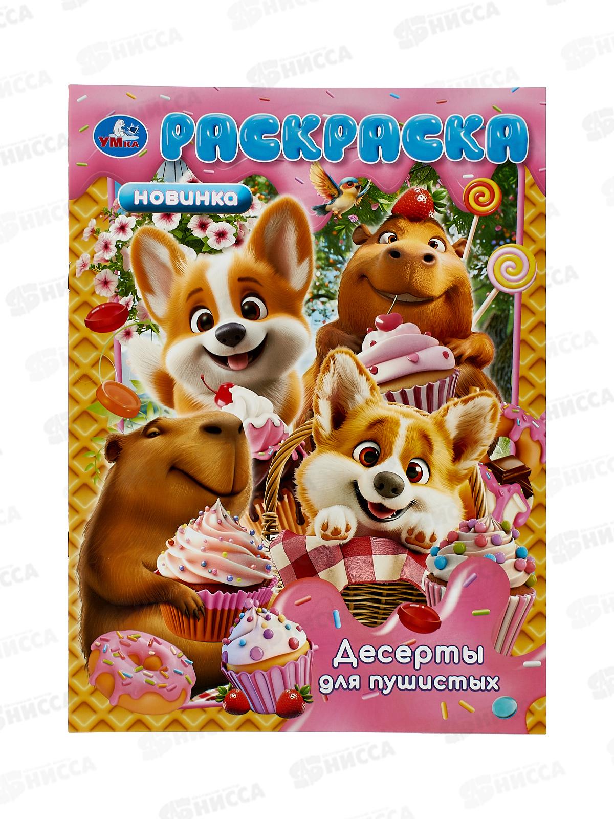Код:597886; Раскраска "УМКА" 11094-1, Десерты для пушистых, 214х290мм 16стр. *50