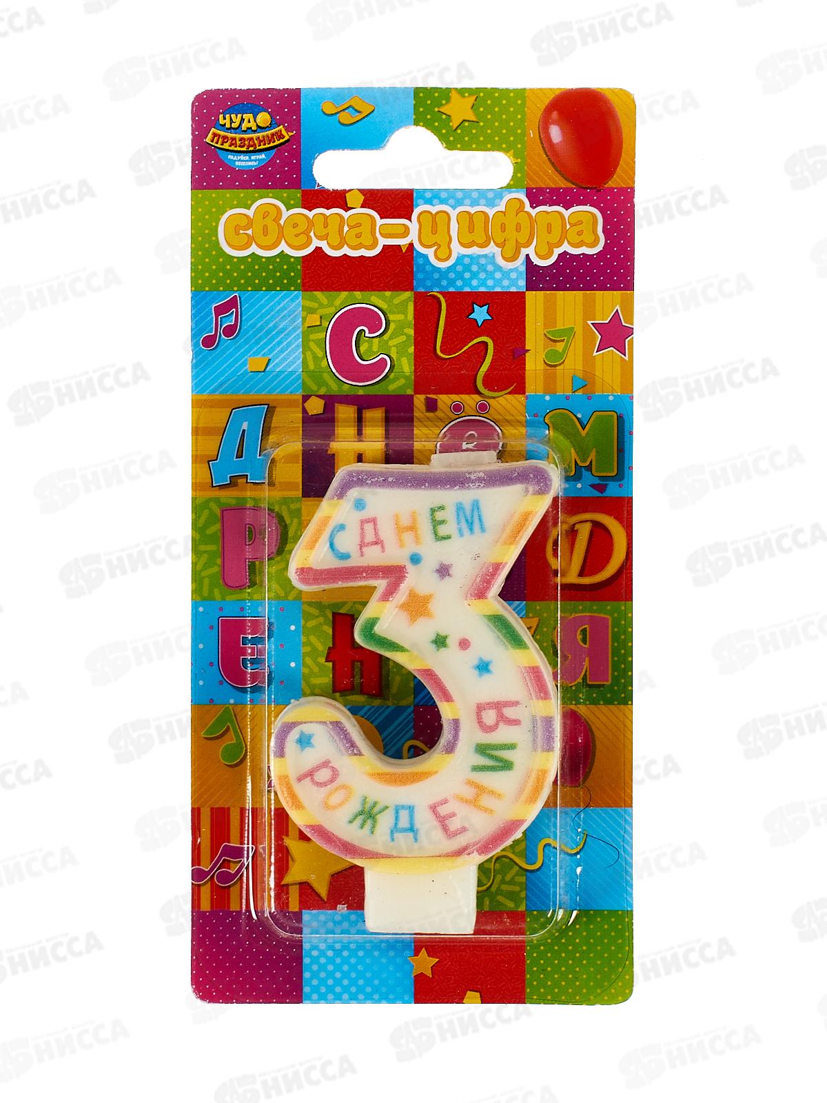 Код:572440; Свеча для торта цифра "3" День рождения СС-110191-НВ4 Чудо праздник*12
