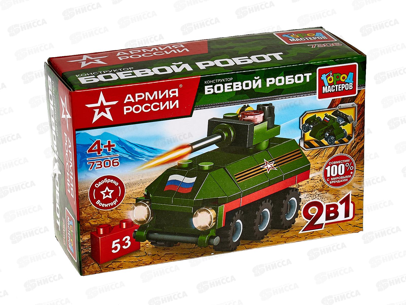 Код:444567; Конструктор "ГОРОД МАСТЕРОВ" Армия России, Боевой робот 2в1, 53детали 7306-КК