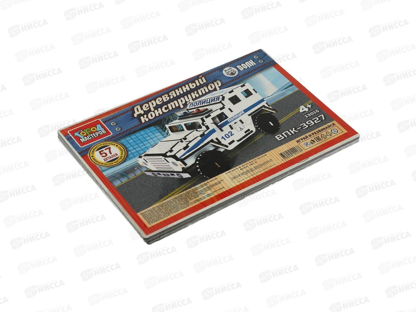 Код:477790; Конструктор "ГОРОД МАСТЕРОВ" ВПК деревянный Бронемашина волк Полиция, 57детале 13015-AV