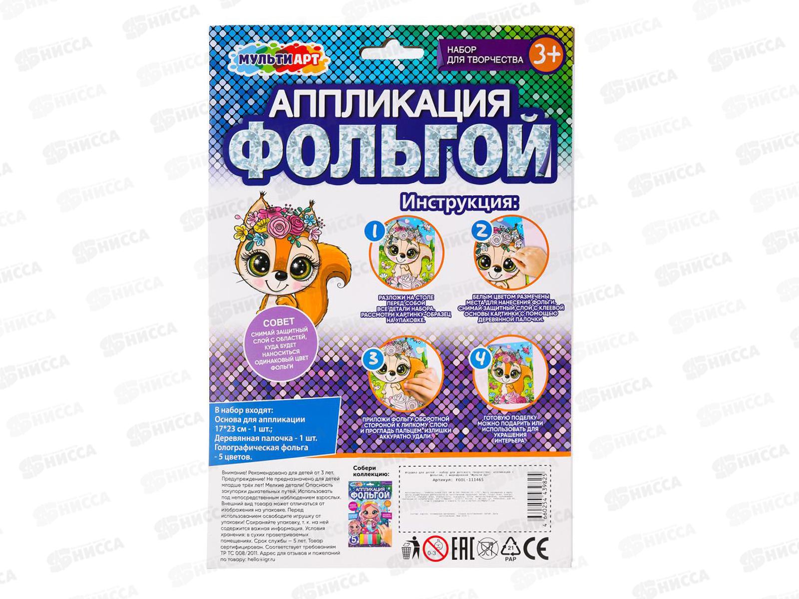 Аппликация из фольги 17*23см Большие глаза, FOIL-111465 Мульти Арт