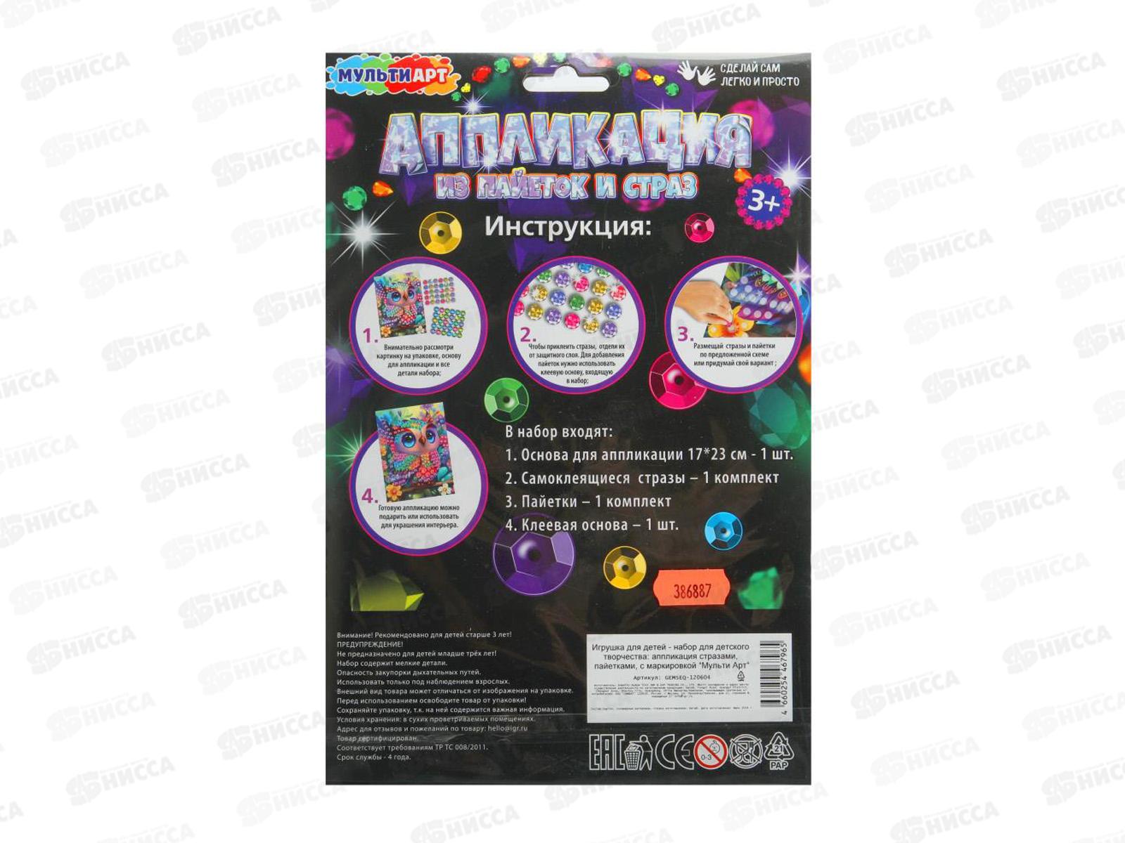 Аппликация из пайеток и страз Совушка (17х23см) GEMSEQ-120604