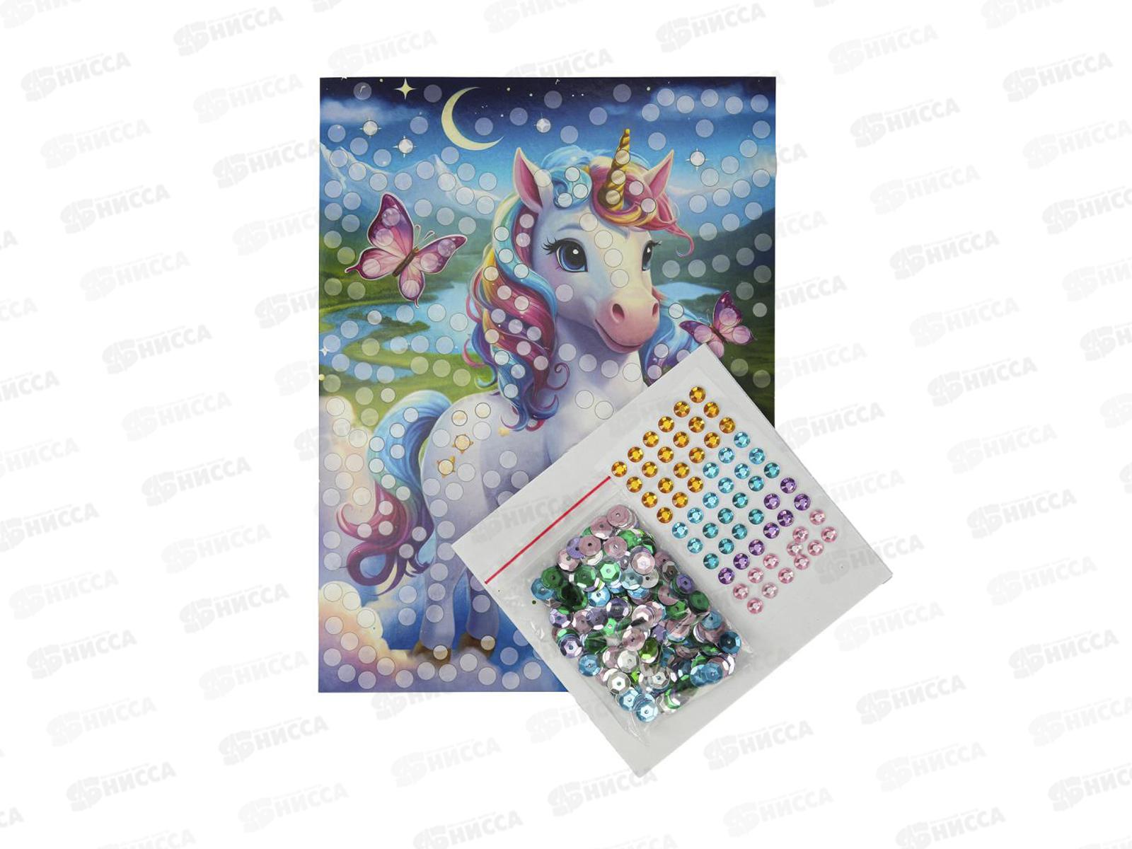 Аппликация из пайеток 17*23см Единорог, GEMSEQ-122312