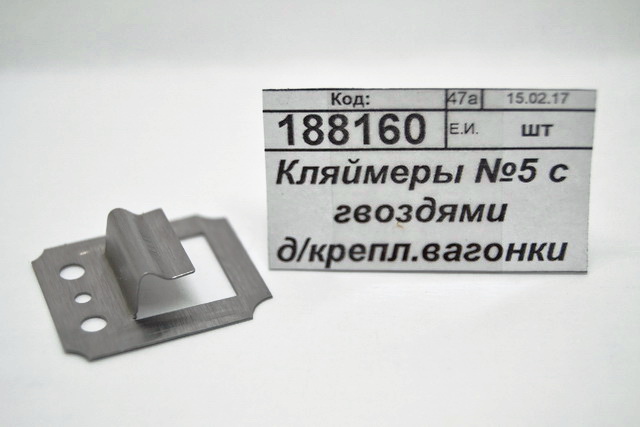 Код:188160; Кляймеры №5 с гвоздями для крепления вагонки из осины и липы *75
