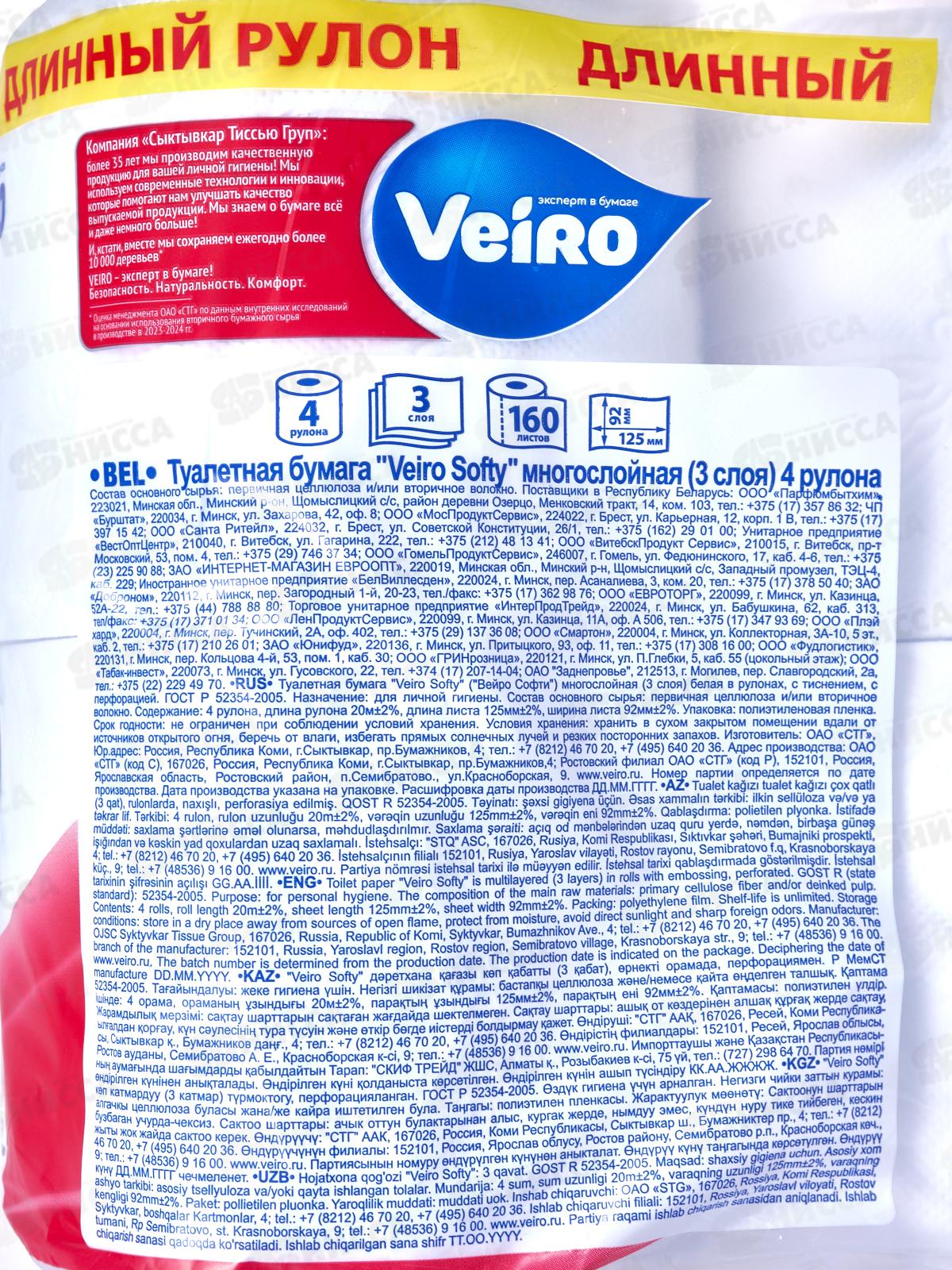 Бумага туалетная Linia Veiro Softi 3 слойные, 4рулона /3C34