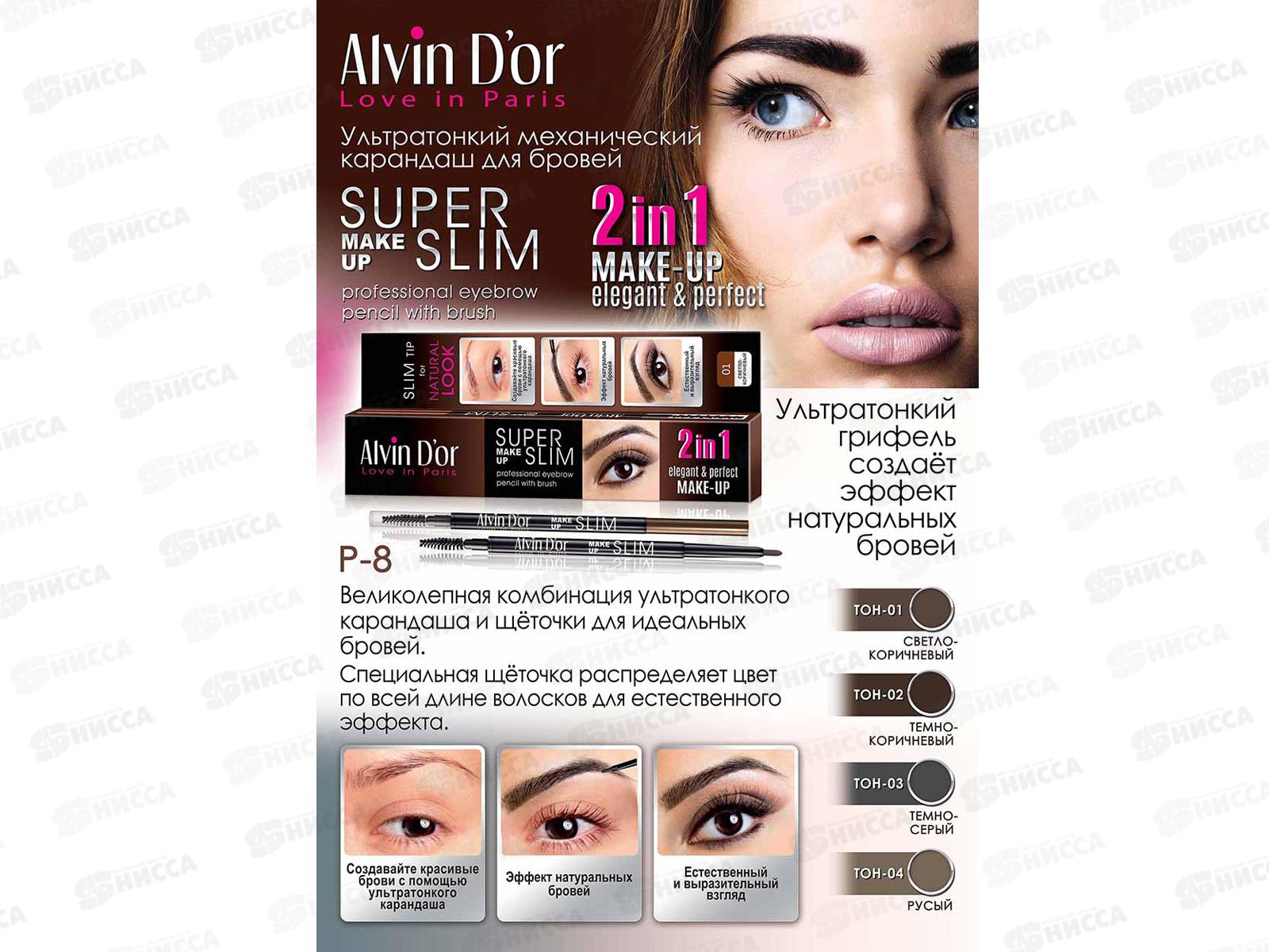 Код:276548; Алвин Дор Р-9 карандаш для бровей №02 Dark Brown