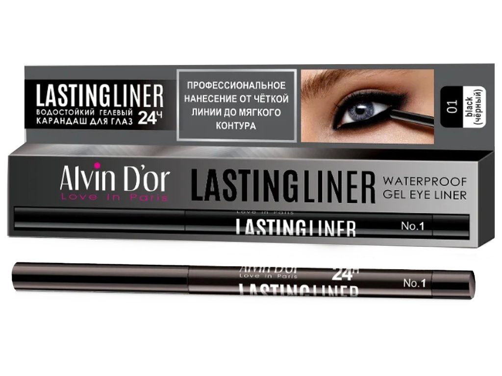Профессиональный стойкий гелевый лайнер для глаз от бренда Alvin D'or тон № 01 (Black), позволяет легко нарисовать безупречные стрелки любой толщи...