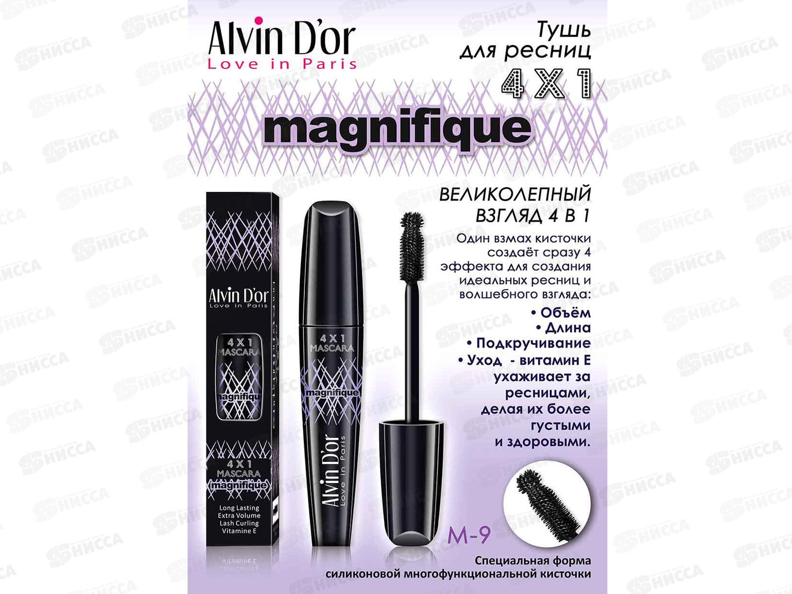 Тушь для ресниц Magnifique от бренда Alvin D'or. Тушь всего одним взмахом кисточки создает идеальные объем, длину и подкручивание ресниц. Витамин ...