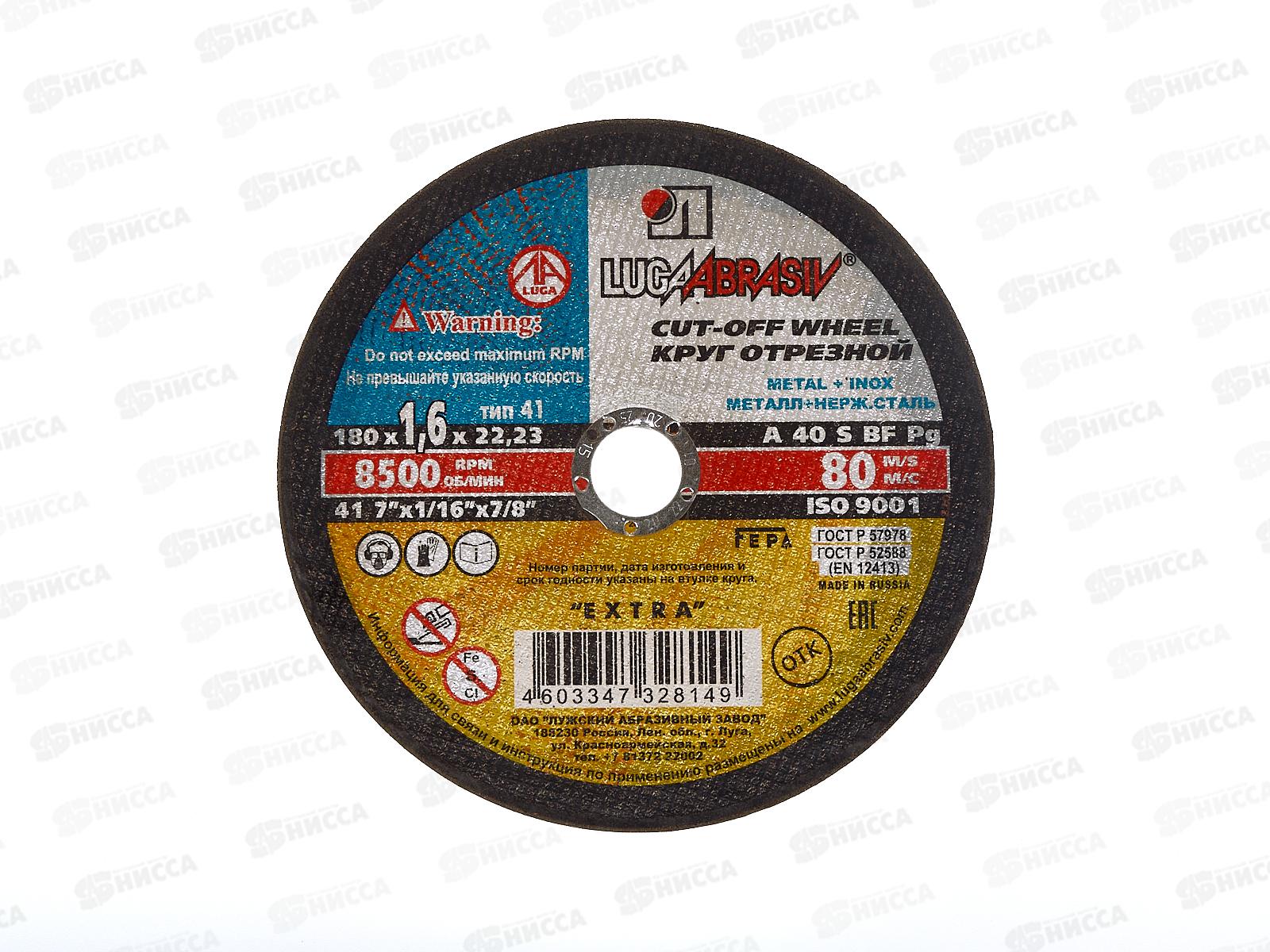 Код:028069; Круг отрезной по металлу (Луга) 180*1,6*22 *25/150