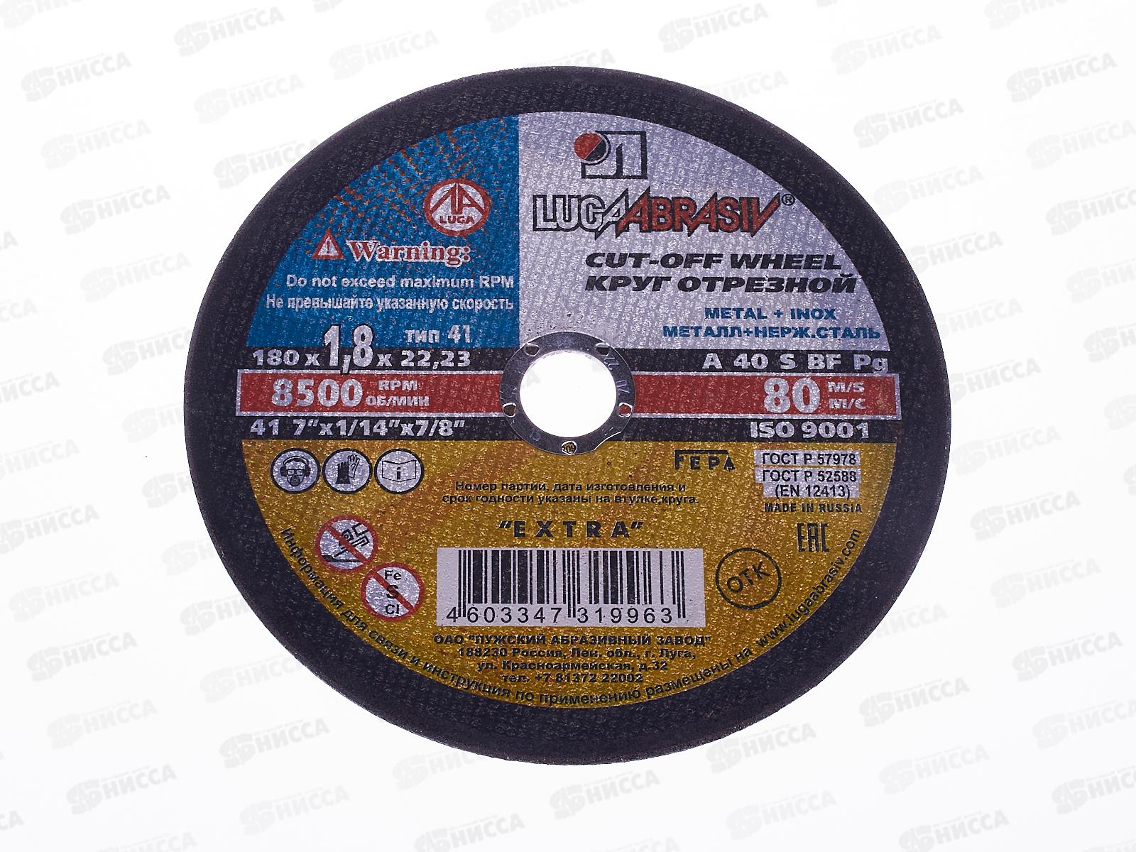 Код:451837; Круг отрезной по металлу (Луга) 180*1,8*22 *25
