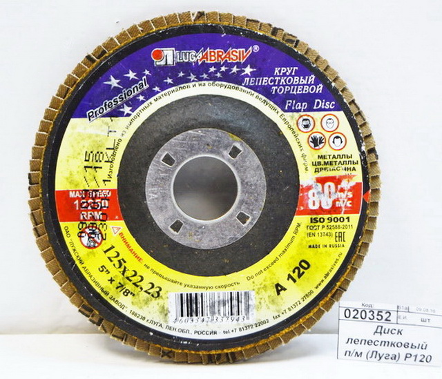 Код:020352; Диск лепестковый по металлу (Луга) Р120 125*22 *5/80