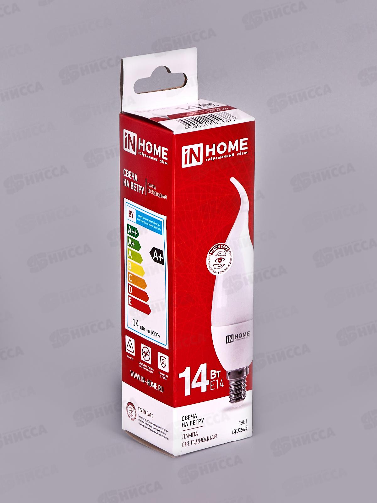 Код:553291; Лампа светодиодная IN HOME LED-Свеча на ветру 14Вт E14 6500К 1330Лм *50