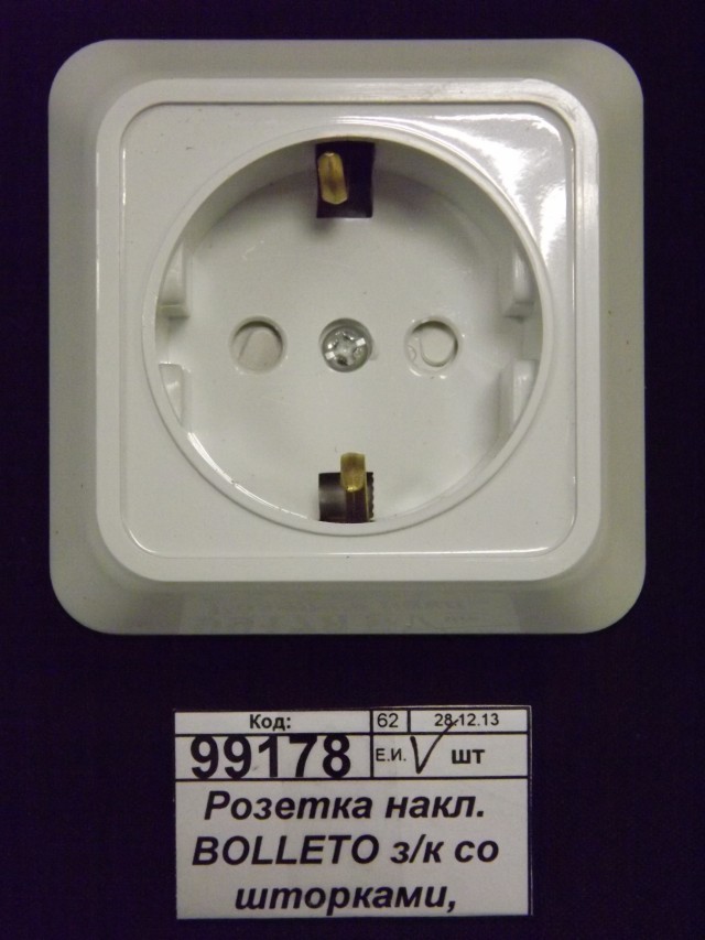 Код:099178; Розетка накладная BOLLETO с заземляющим контактом со шторками, белая, 7028x-W *10